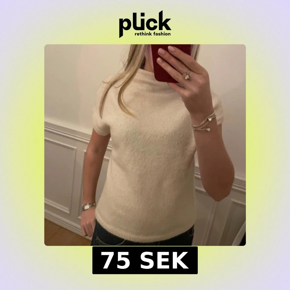 Säljer en stilren vit tröja med korta ärmar. Perfekt för en enkel och elegant look. Har tagit bort lappen i ryggen då den syntes igenom. Ursprungligen 299