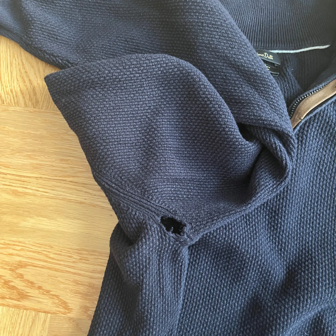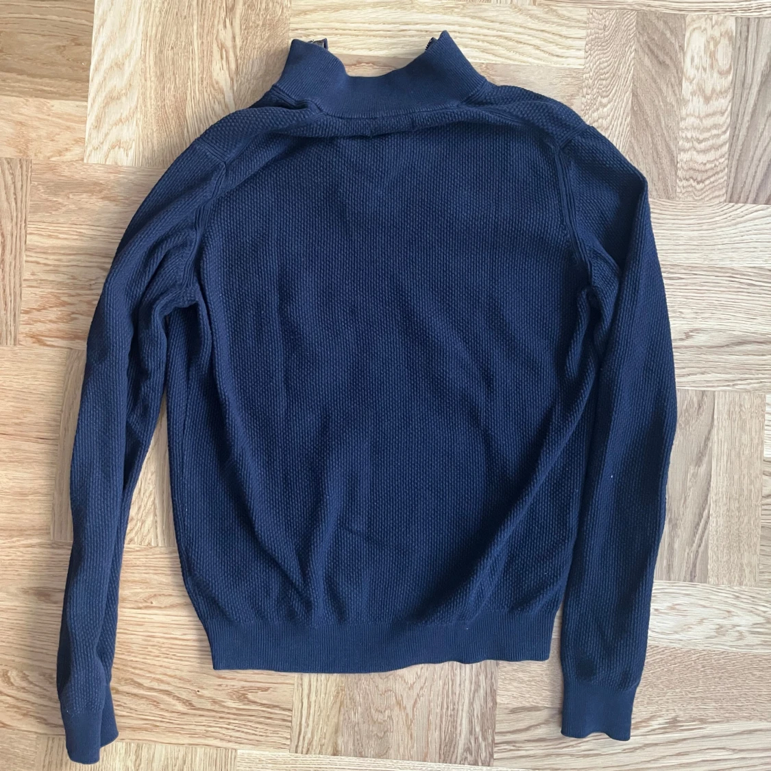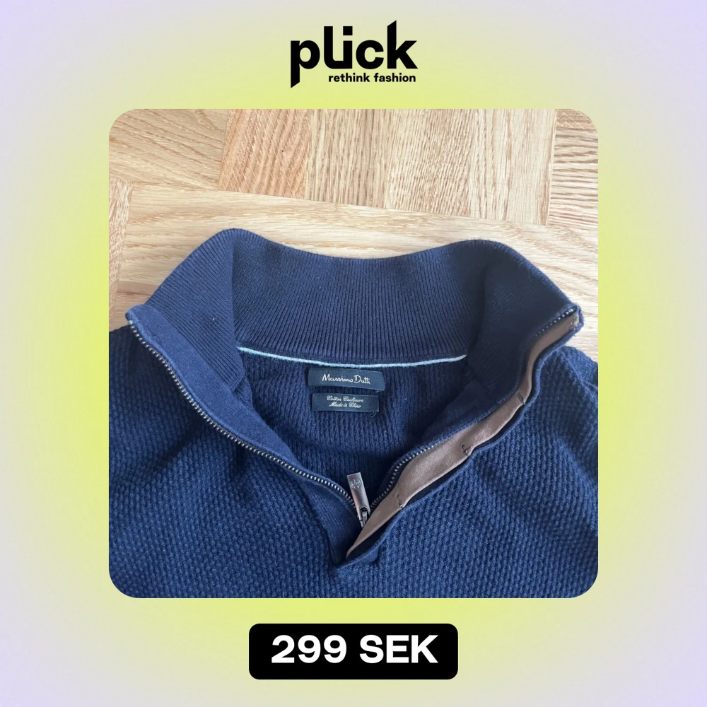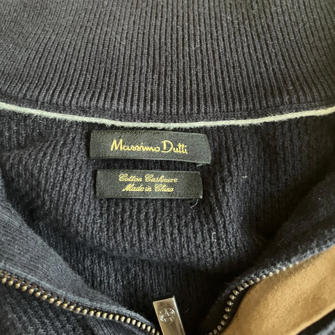 Säljer en snygg mörkblå tröja från Massimo Dutti i bomull och kashmir. Den har en dragkedja vid halsen och ribbade muddar. Perfekt för både höst och vinter. Passar till både vardag och finare tillfällen. 🧥
