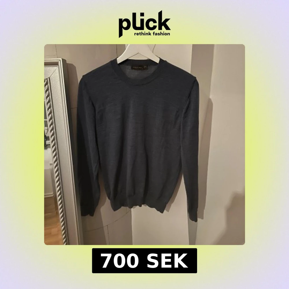 En rundhalsad tröja från Oscar Jacobson i en lite starke och ljusare blå färg. Denna tröja är i merino ull och är lite tunnare. Den har en slimmad passform och är i modellen Miguel denim blue. Köpt på NK Göteborg och ny pris är 1500kr har kvitto om det önskas se. Hör av dig vid minsta lilla