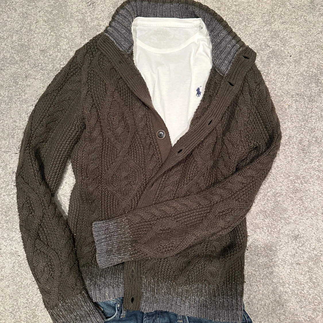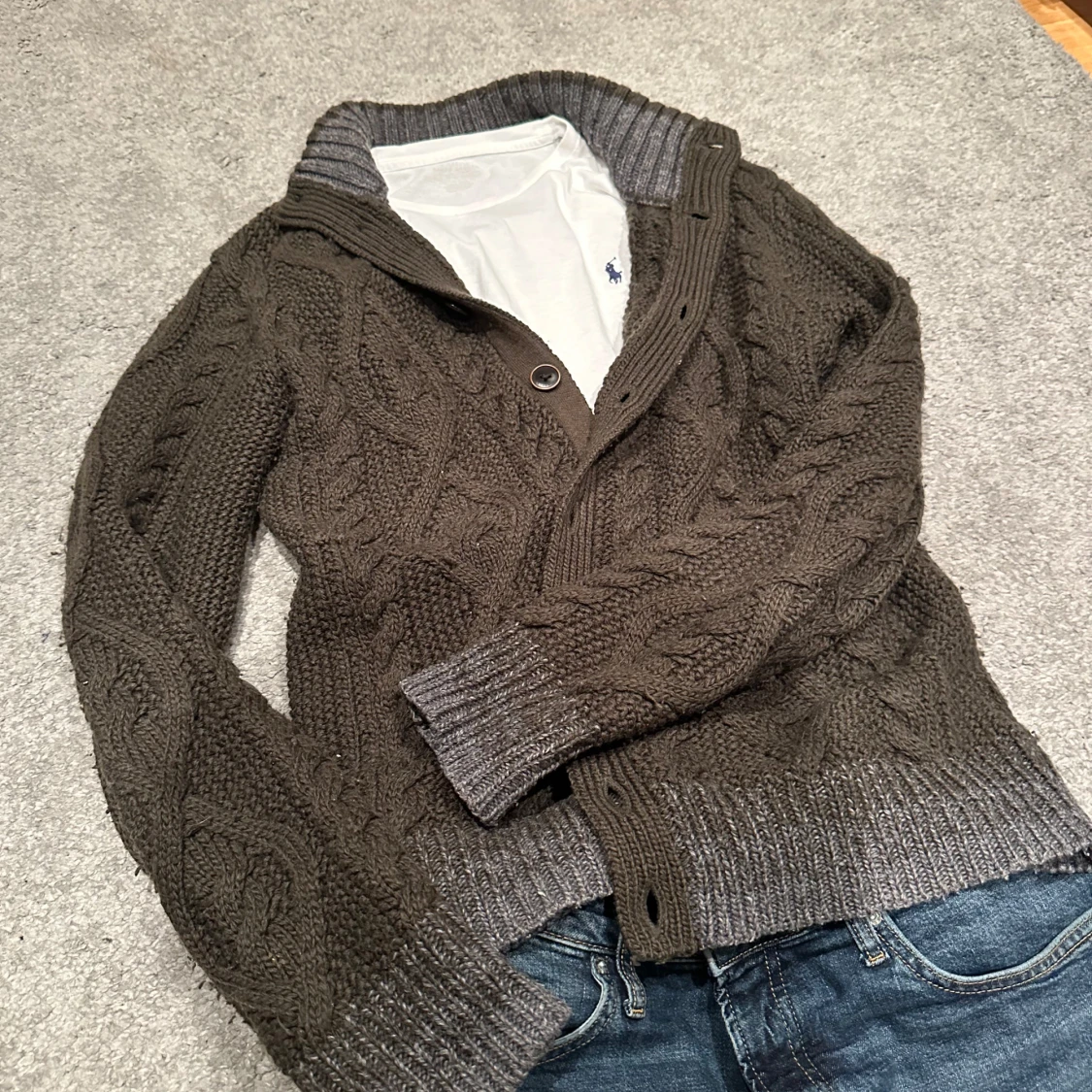 Snygg brun stickad kofta från Replay med kabelstickat mönster. Riktigt soft att ha till vintern passar perfekt att ha under en väst eller som lager plagg. Storlek large passar mig 185cm 85kg