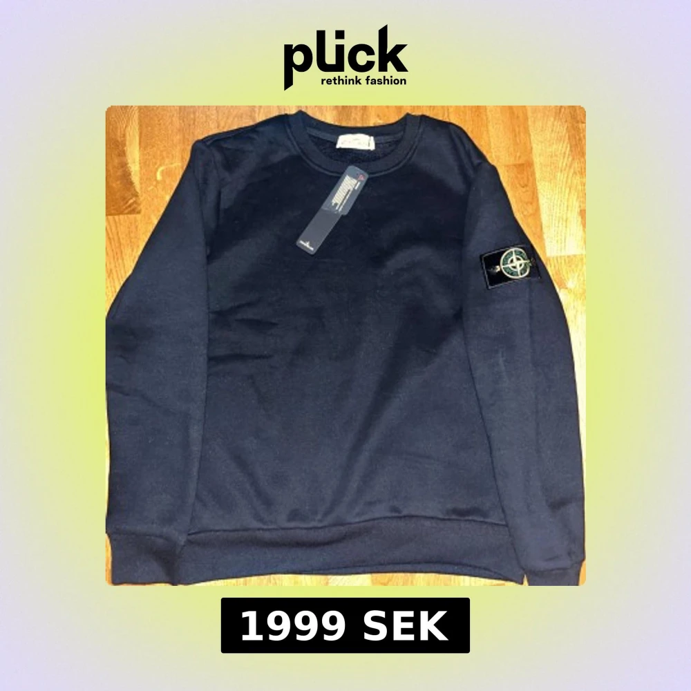 Svart sweatshirt från Stone Island med klassisk rund hals och ribbade muddar. Tröjan har lång ärm och den ikoniska Stone Island-patchen på vänster ärm. Materialet är mjuk bomull som känns skön mot huden. Perfekt för dig som gillar stilrena och snygga streetwear-plagg. Lite stor i storlek.