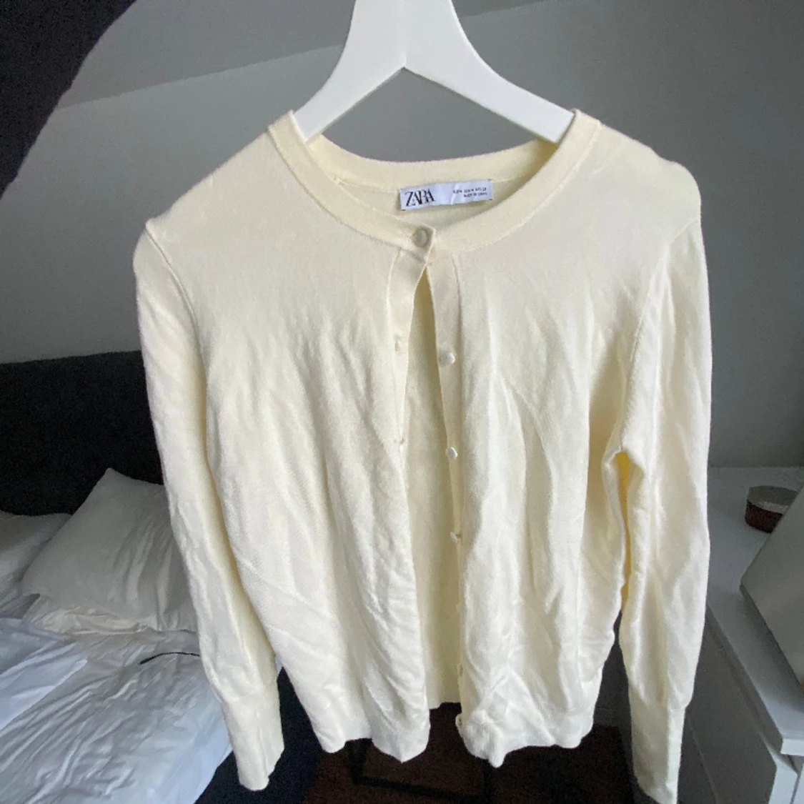 oanvänd stickad kofta i en kräm vit/ varm ton färg från zara. älksar den men har en liknande därav aldrig använt. koftan är i storlek M men passar mig lika bra som bör xs-s, köparen står för frakten💕