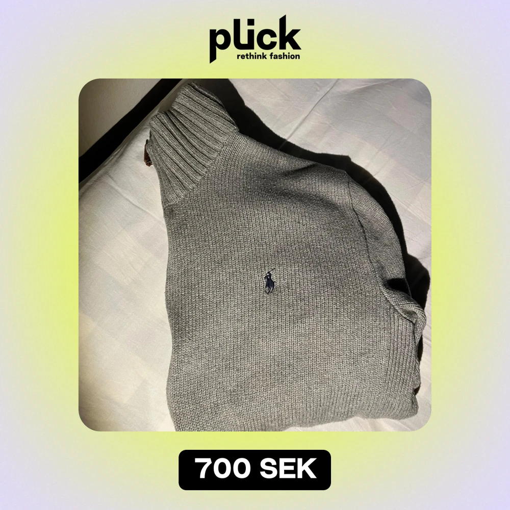 Snygg grå stickad kofta från Ralph Lauren med fullzip. Perfekt för kyliga dagar nu i vinter! Storlek M men passar också L. En liten defekt och det är att dragkedjan inte går att knäppa upp där nere annars är den i grymt skick!