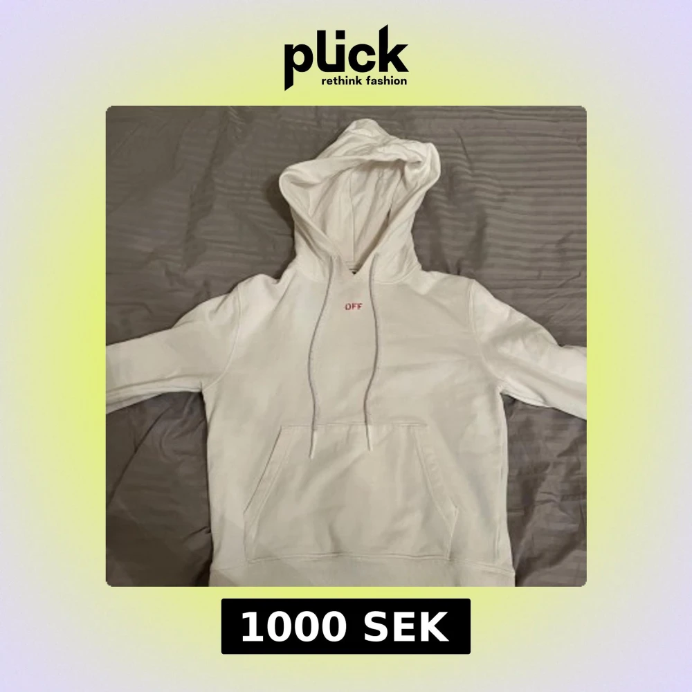 Säljer en stilren vit Off-White hoodie i bra skick äkta såklart