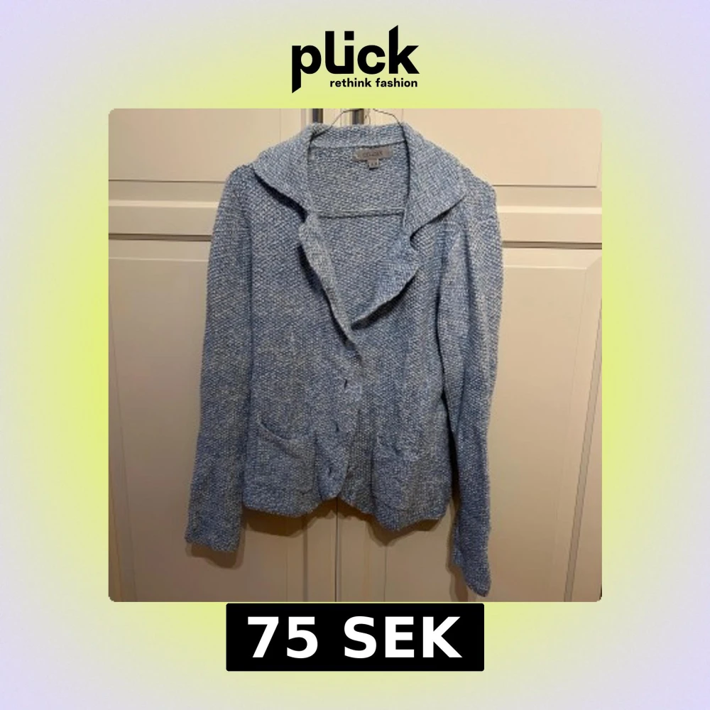 Säljer en ljusblå stickad kavaj från Cellbes med grovstickad struktur. Kavajen har knappar framtill och två fickor. Perfekt för dig som vill ha en mysig men ändå stilren look. I strl M