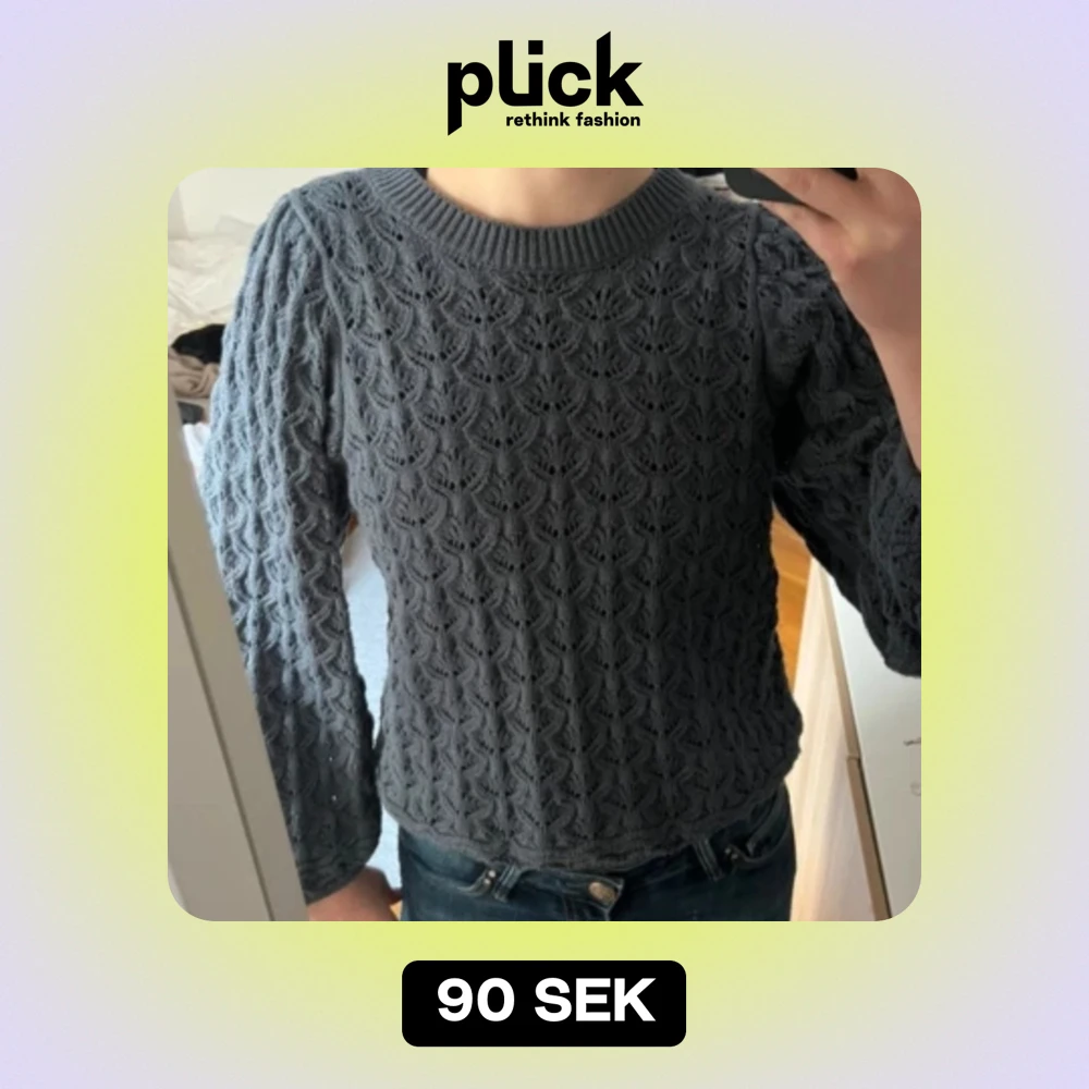 En jättefin blå/grå tröja från Lindex, virkad med lite kortare armar💙 Använd ett fåtal gånger, i väldigt bra skick. Normal i storleken.