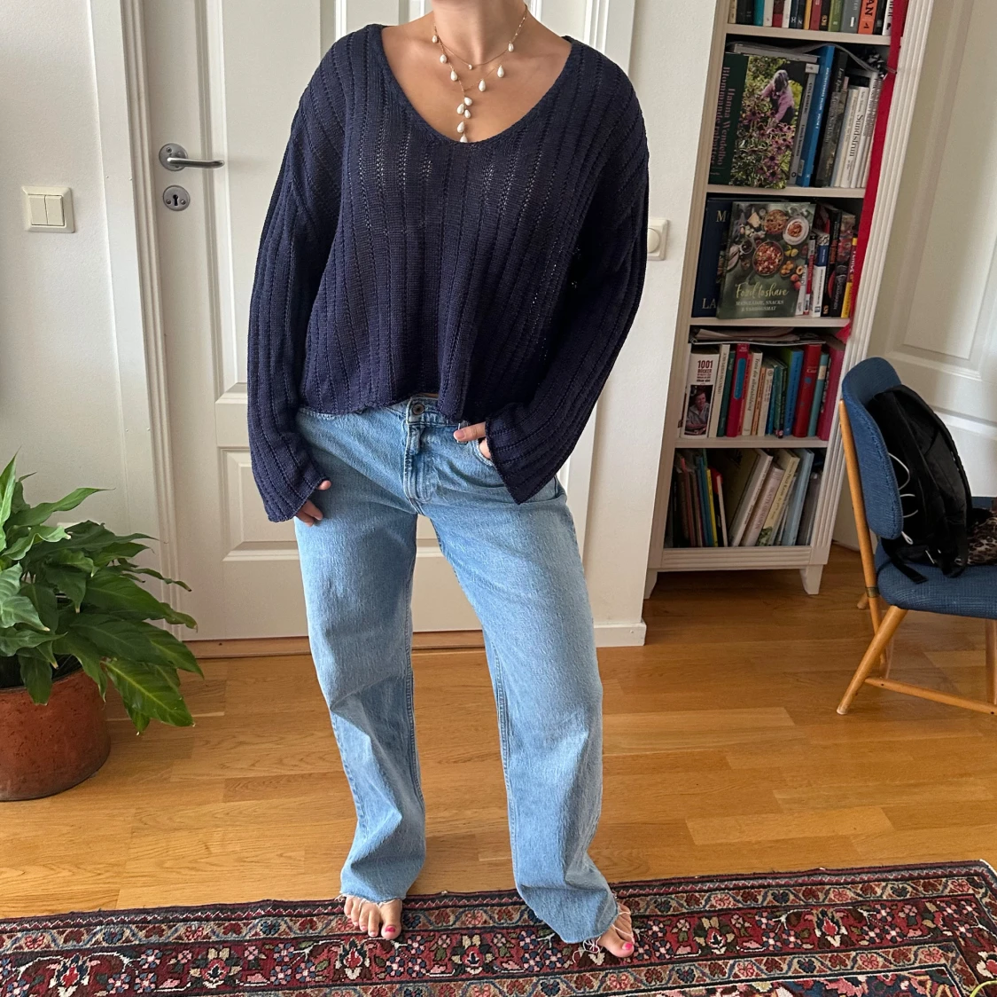 Virkad marinblå tröja från Zara i strl S