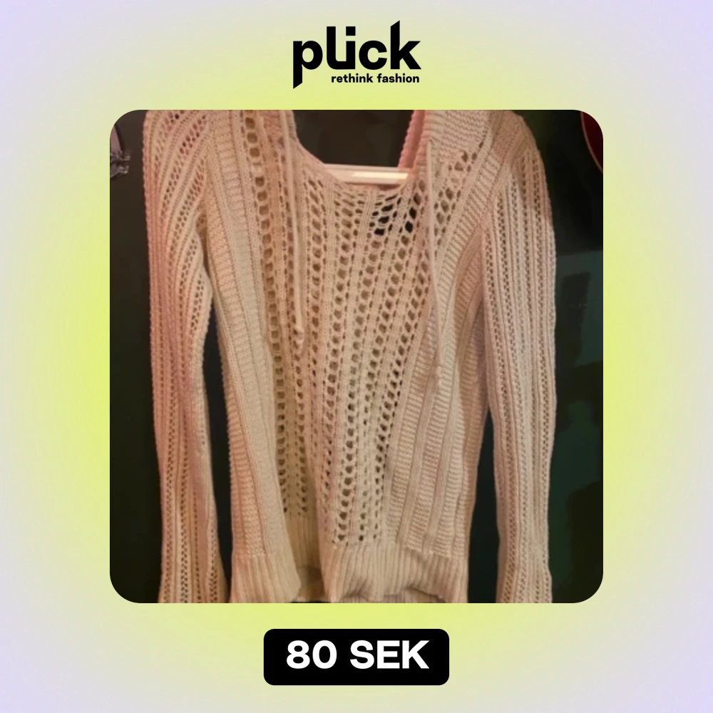 Jättesnygg och skön virkad tröja med luva. Storlek S skulle jag säga. Köparen står för frakt.