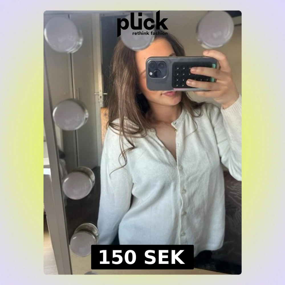 Säljer en enkel och stilren vit kofta med knäppning framtill. Koftan har långa ärmar, rund halsringning och mjukt material som känns skönt mot huden. Perfekt att slänga över en topp för en clean look.