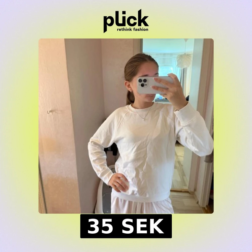 Enkel och stilren vit sweatshirt med rund halsringning och långa ärmar. Tröjan är i mjuk bomull och har ribbade muddar vid ärmslut och nederkant. Perfekt för en clean och avslappnad look.