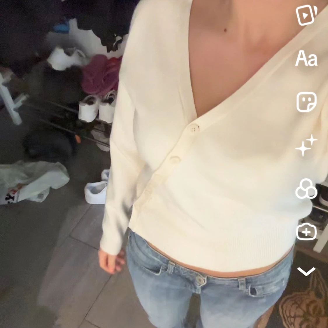 Snygg vit kofta med v-ringning och knappar framtill. Kostade 400ny, använd 1 gång🫶