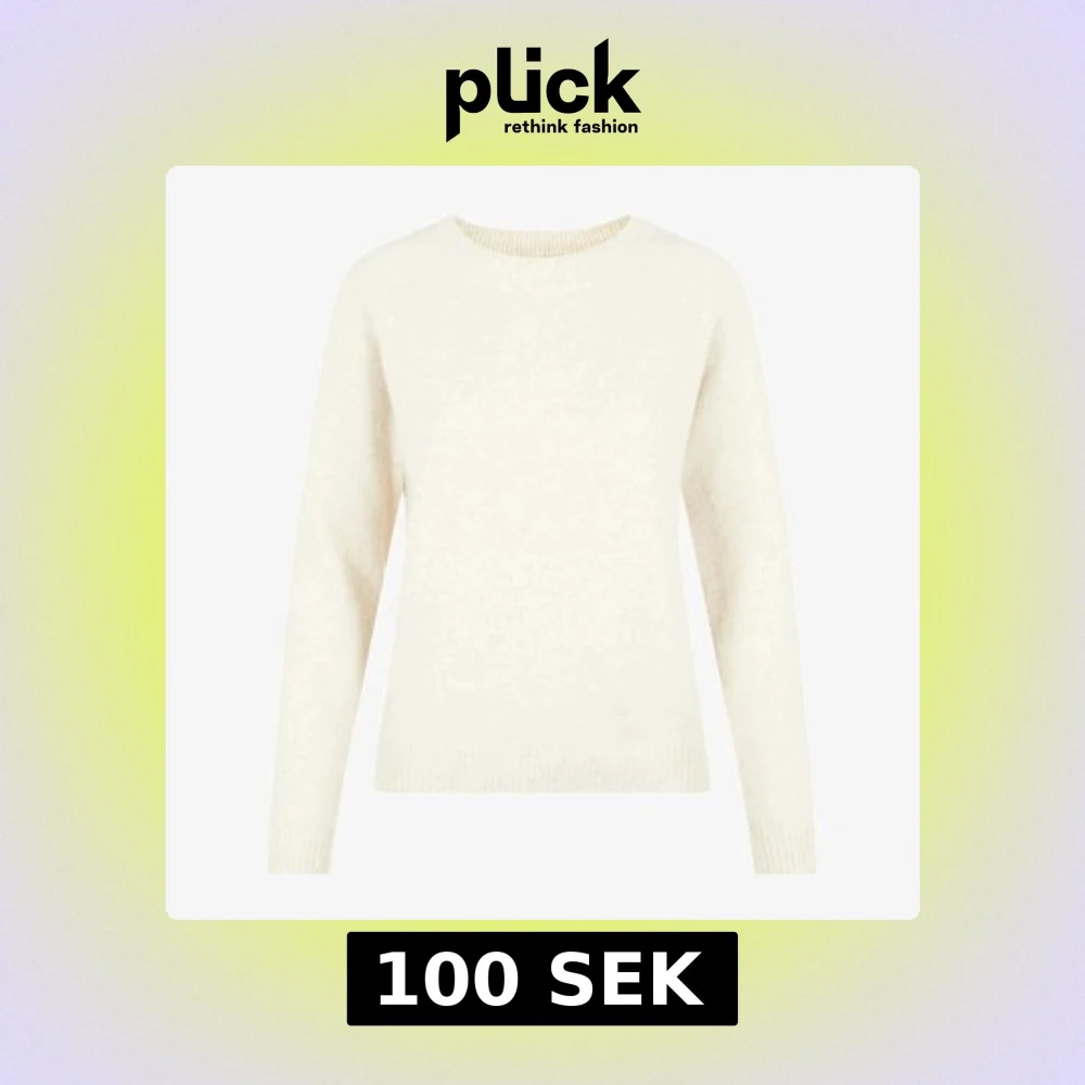 Säljer en stilren vit, beige stickad tröja med rund hals och långa ärmar. Perfekt för kyligare vår och sommar dagar och enkel att matcha med olika outfits💕