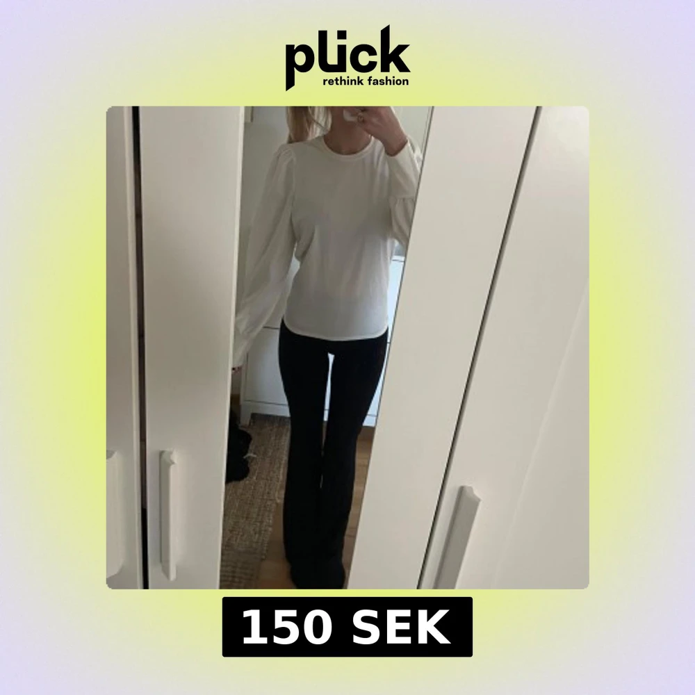 Säljer en stilren vit långärmad topp/blus med puffiga ärmar från märket objekt. Bra material. Jätte söt till sommaren och våren.💕 aldrig använd bara testad