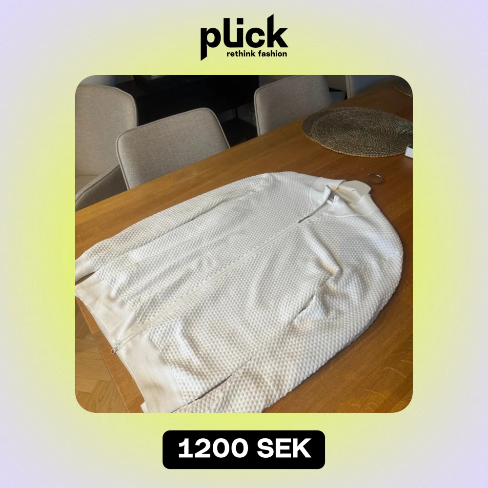 Säljer en stilren vit tröja från Gran Sasso i 100% bomull. Tröjan har en dragkedja framtill och en diskret textur som ger den en unik look. Säljes då sen är för stor för mig| Väldigt mjuk och bekväm
