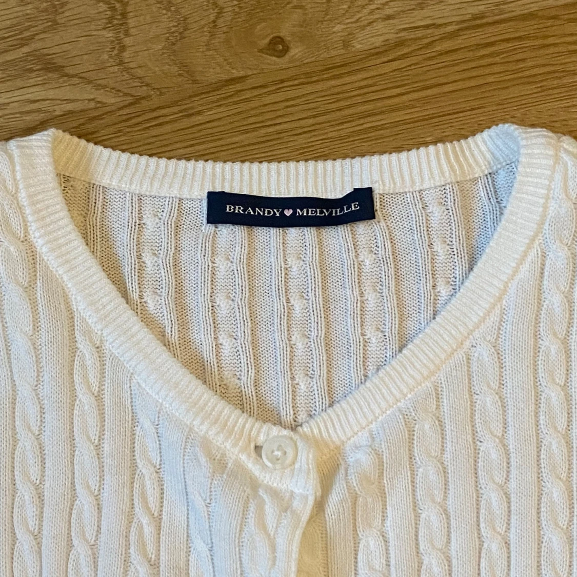 säljer en vit kofta i jättebra skick från brandy melville💕💕 passformen är rätt så liten, det är ingen jättestor kofta