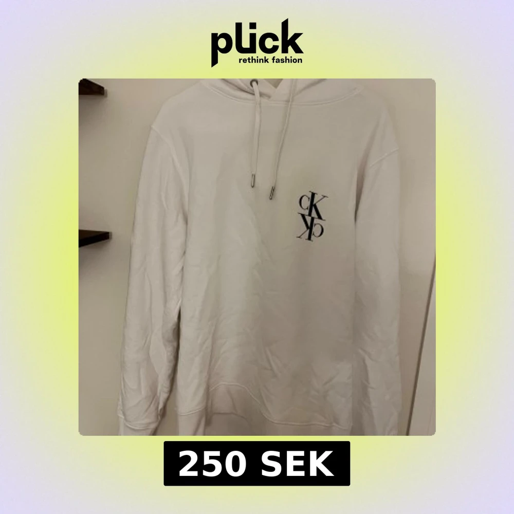 Snygg vit hoodie från Calvin Klein med stor svart CK-logga på ryggen och mindre logga på bröstet. Tröjan har huva med snörning och är långärmad. Perfekt för dig som gillar stilrena och trendiga plagg.