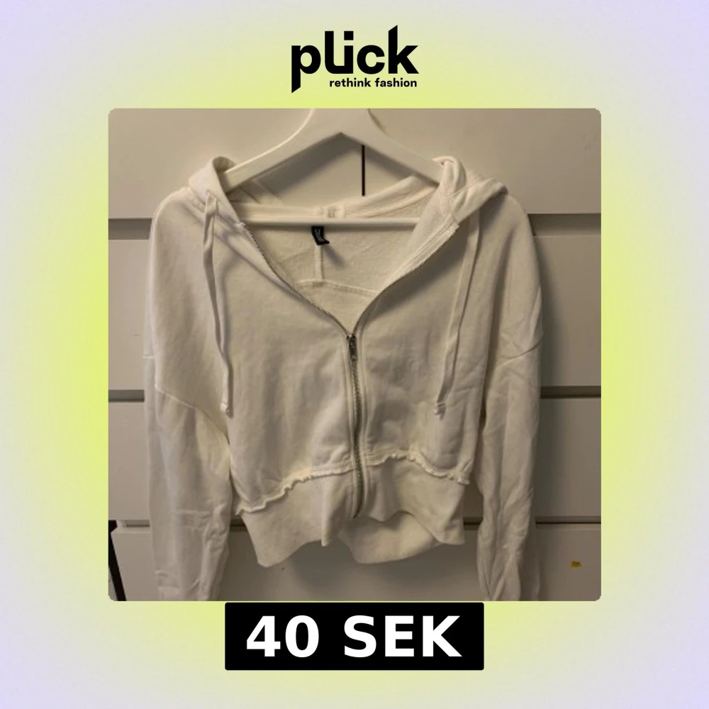 Säljer en vit croppad hoodie från H&M Divided i storlek M. Tröjan har dragkedja framtill, huva med snörning och långa ärmar. Tillverkad i mjuk bomullsmix, perfekt för chill dagar. Snygg rå kant nedtill för en trendig look. Bara använd några gånger
