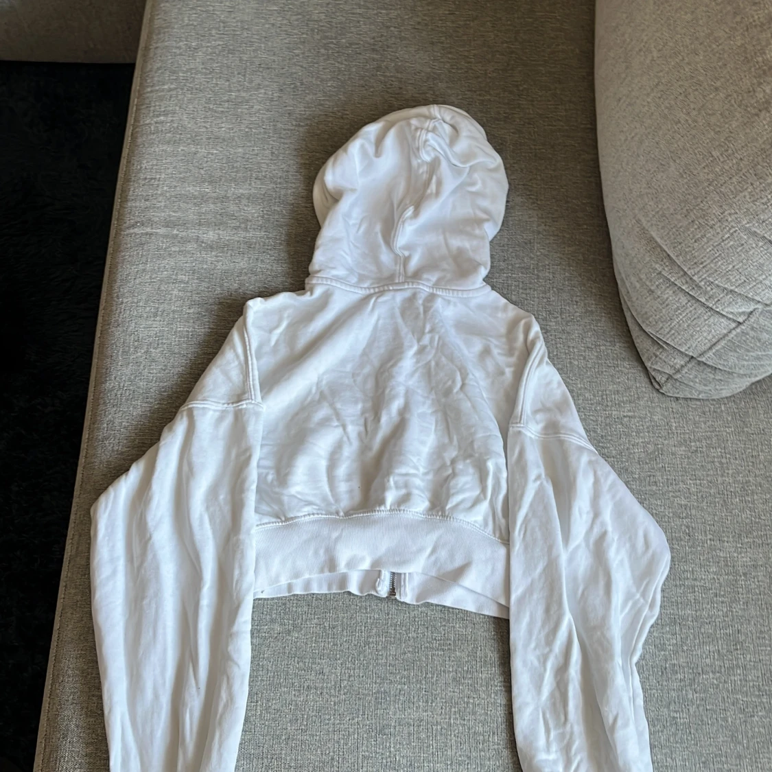Säljer en vit croppad hoodie från H&M Divided i storlek XS. Tröjan har dragkedja framtill, huva och långa, breda ärmar. Perfekt för en chill och avslappnad stil. Tillverkad i mjuk bomullsmix som känns skön mot huden.