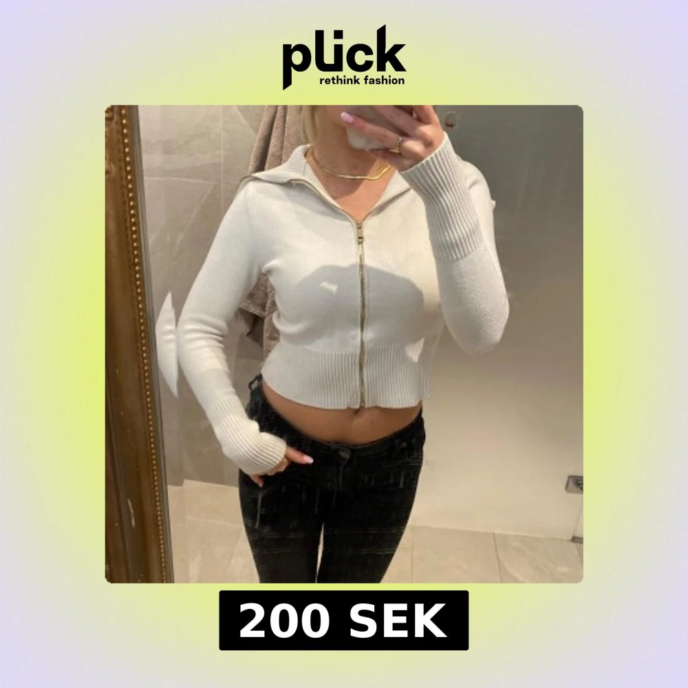 Snygg vit croppad kofta med dragkedja framtill. Den har långa ärmar och en ribbad kant vid ärmslut och nederkant. Perfekt för en stilren look.