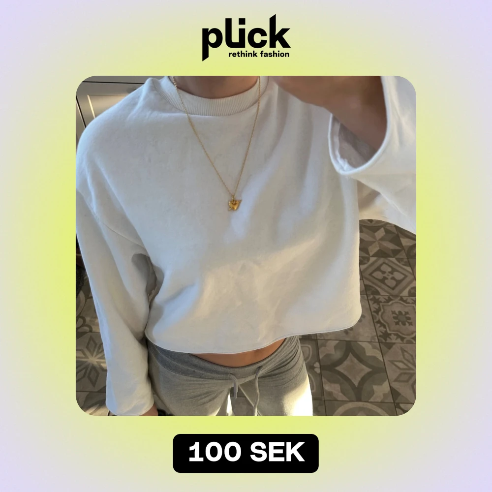 Säljer en superfin vit croppad tröja från Gina tricot. De är en sweatshirt som jag tagit bort muddarna på och sytt om🌨️🌨️🌨️