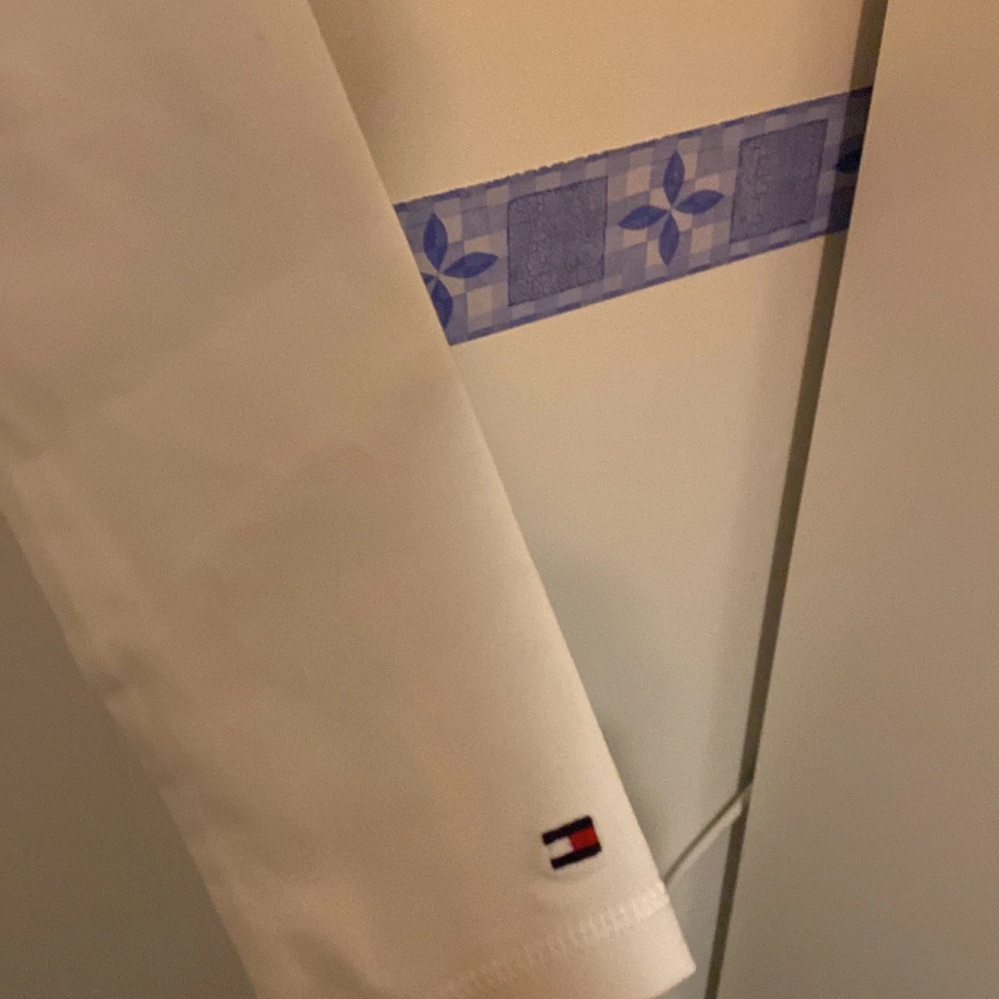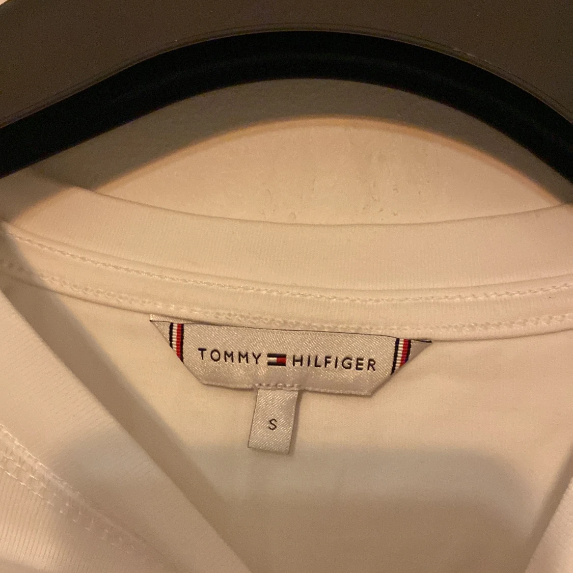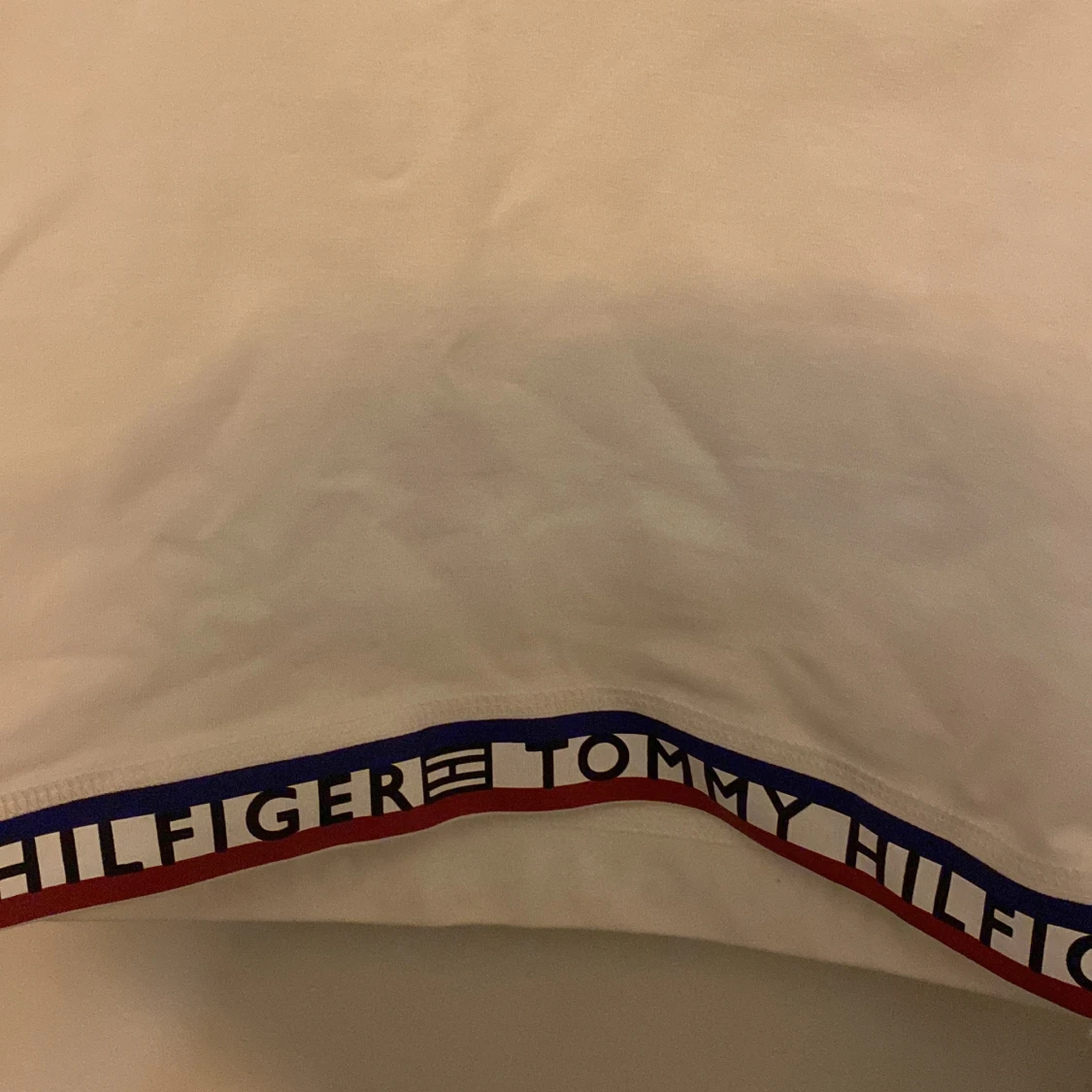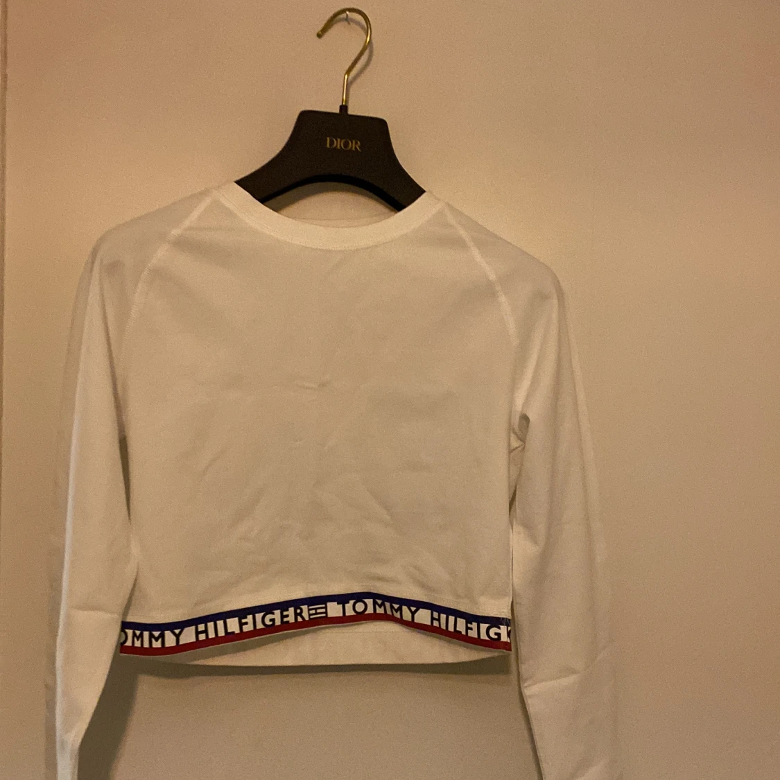 Snygg vit croppad tröja från Tommy Hilfiger med långa ärmar. Tröjan har ett elastiskt band med Tommy Hilfiger-loggan i blått och rött vid nederkanten. Perfekt för en stilren och avslappnad look. Helt oanvänd!