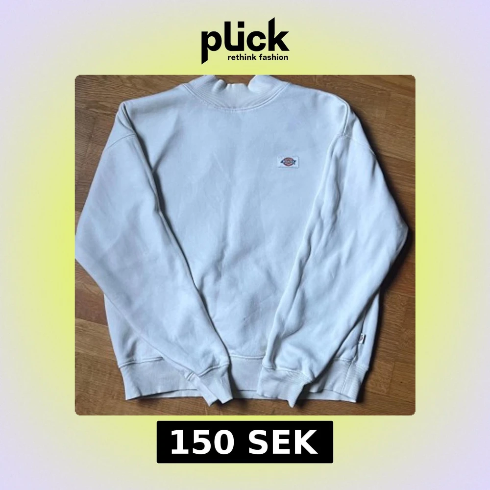 Vit sweatshirt från dickies, lite högre krage men inte polo. Har en liten fläck på framsidan (sista bilden)