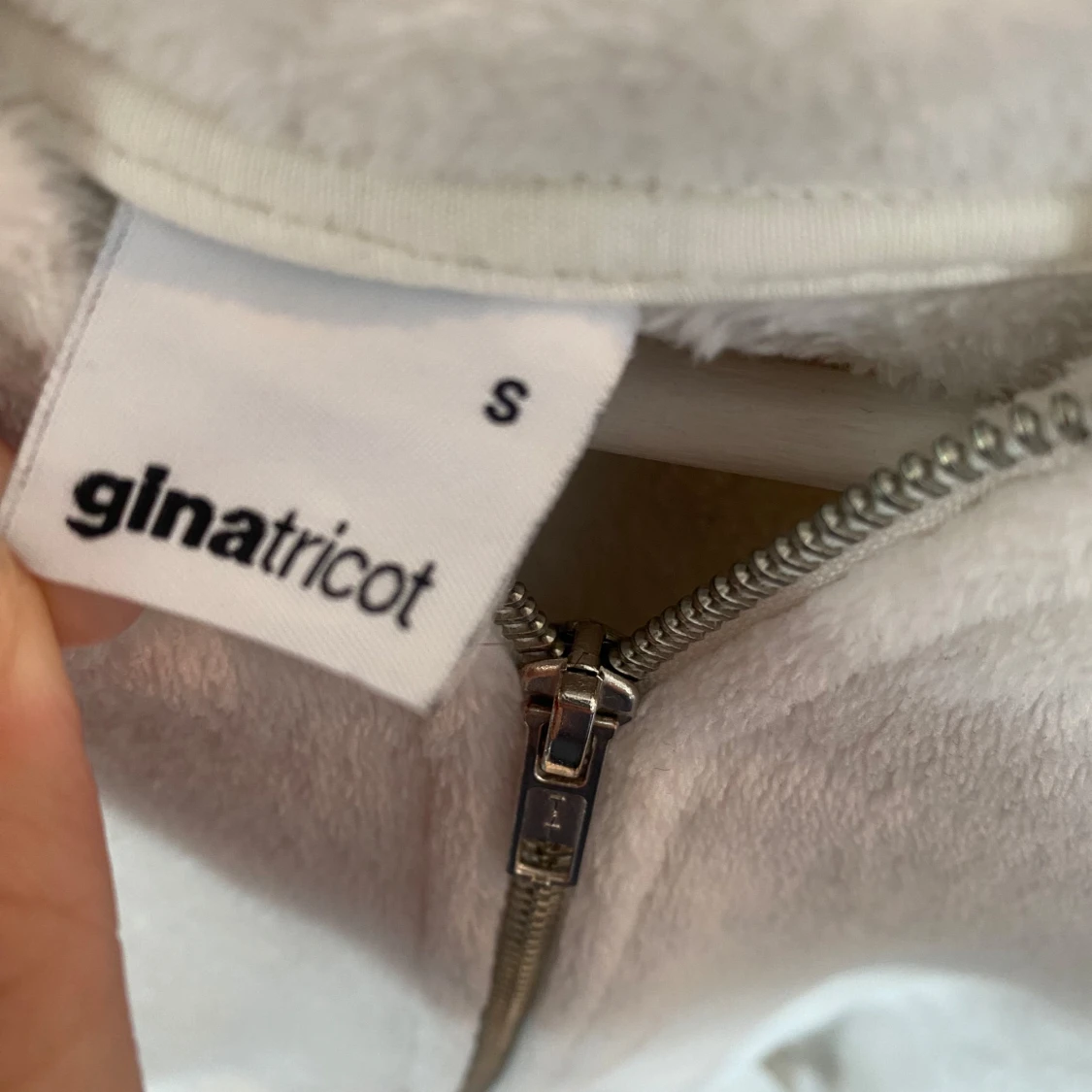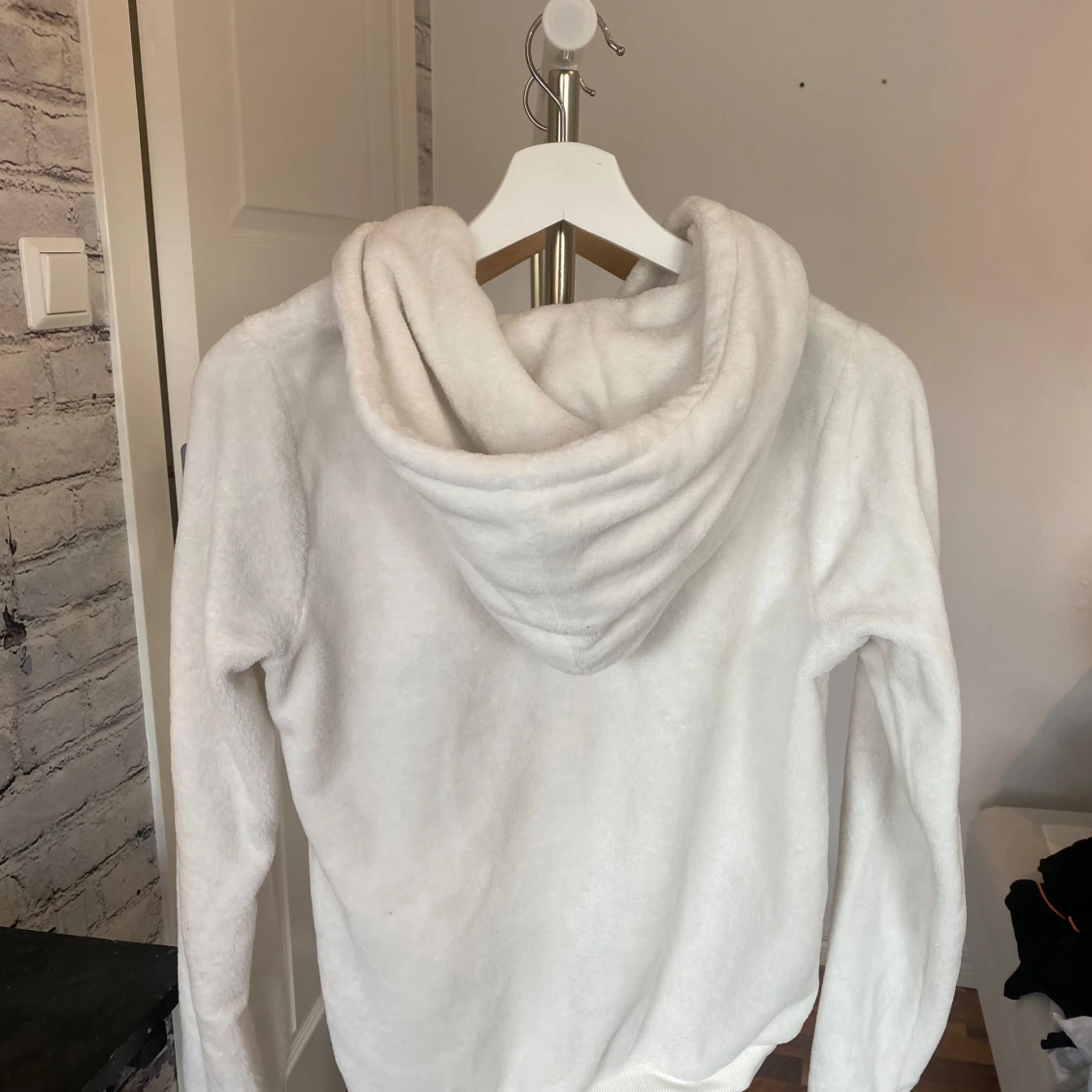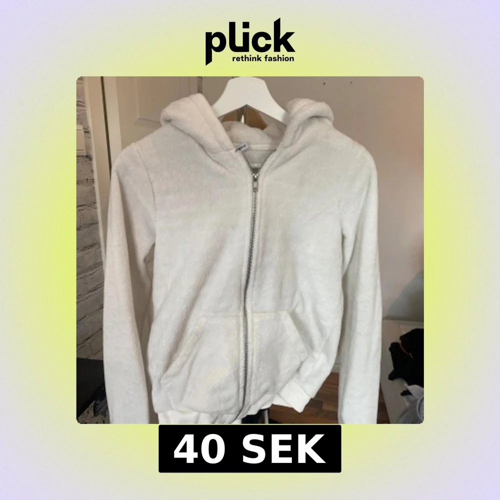 Mysig vit hoodie från Gina Tricot i storlek S. Tröjan är tillverkad i mjuk fleece, har huva, dragkedja framtill och två praktiska fickor. Perfekt för chill dagar och när du vill ha något extra bekvämt. Långärmad och med ribbade muddar vid ärmslut och nederkant.