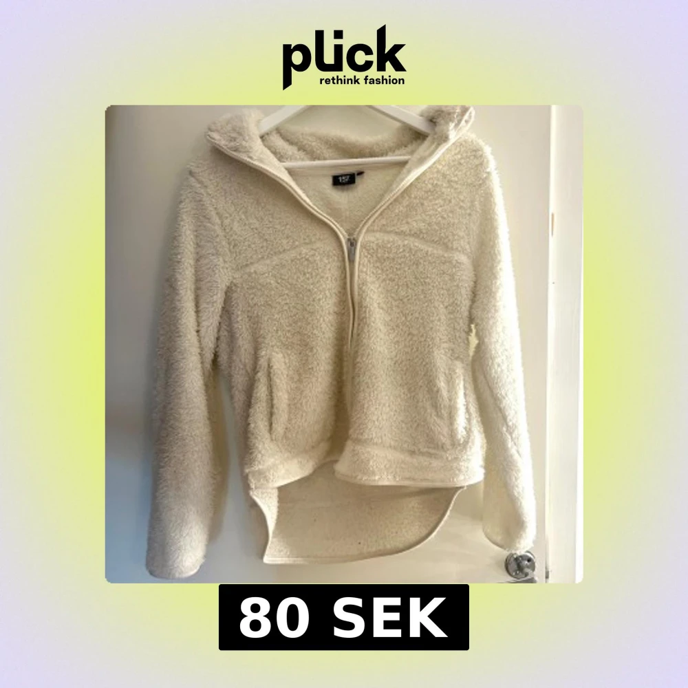 Mysig vit teddy fleece från Lager 157 med dragkedja framtill och två fickor. Tröjan har lång ärm och är lite längre baktill för extra komfort. Har tecken på användning men bra skick!