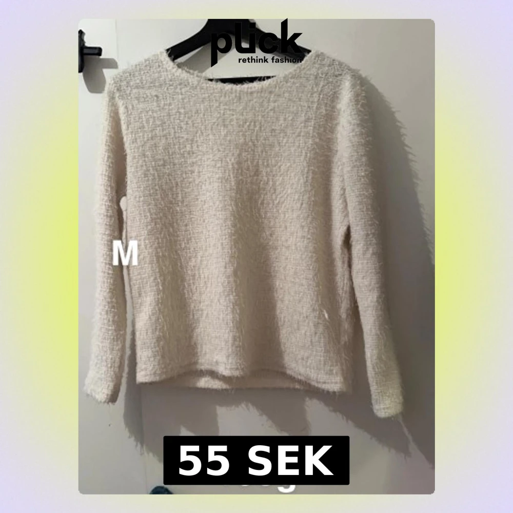 Säljer en vit fluffig tröja i storlek M med lång ärm och rund hals. Materialet är mjukt och har en lite lurvig textur som ger en mysig känsla. Perfekt för dig som gillar stilrena och bekväma plagg med lite extra struktur.🌸 Fint använt skick. Storlek m