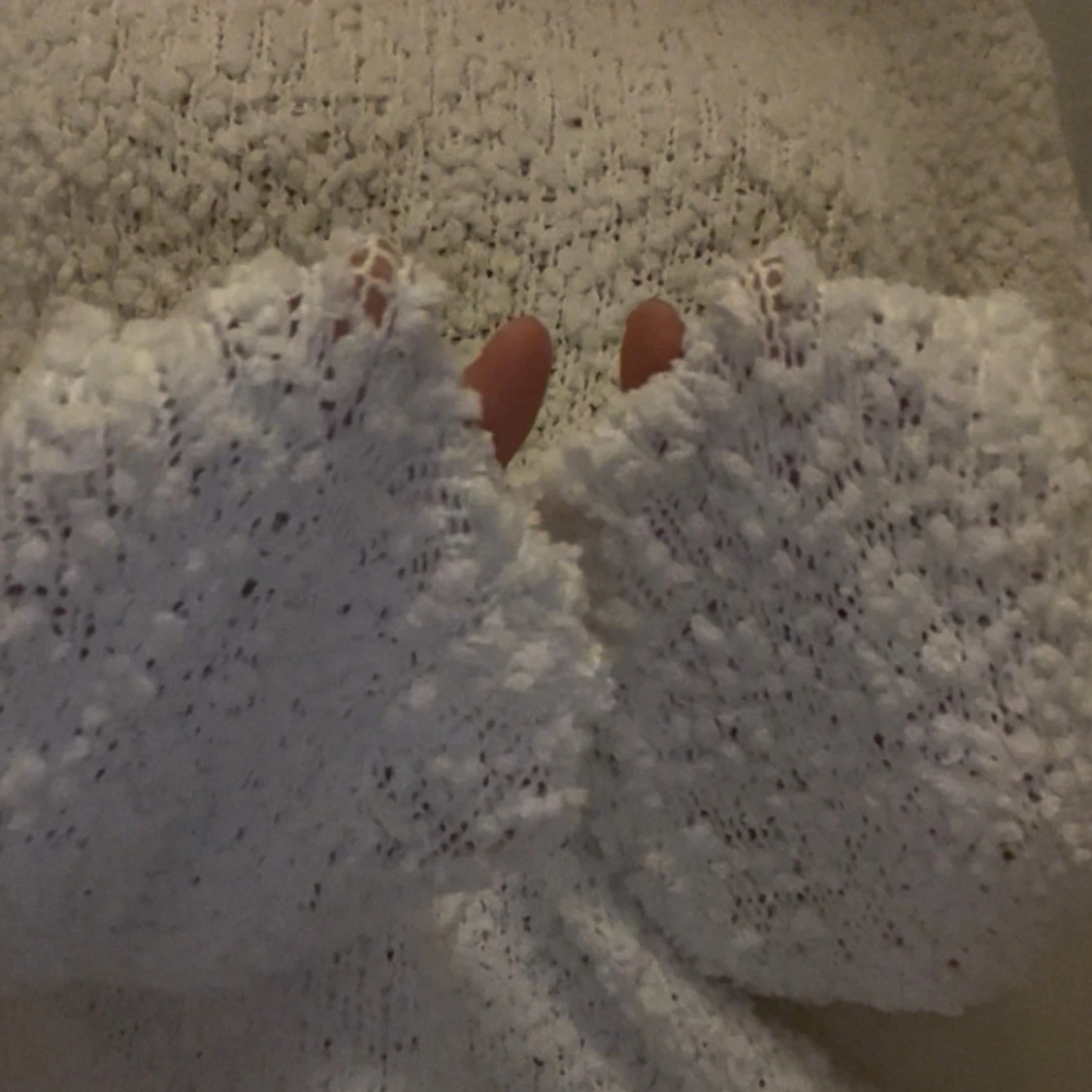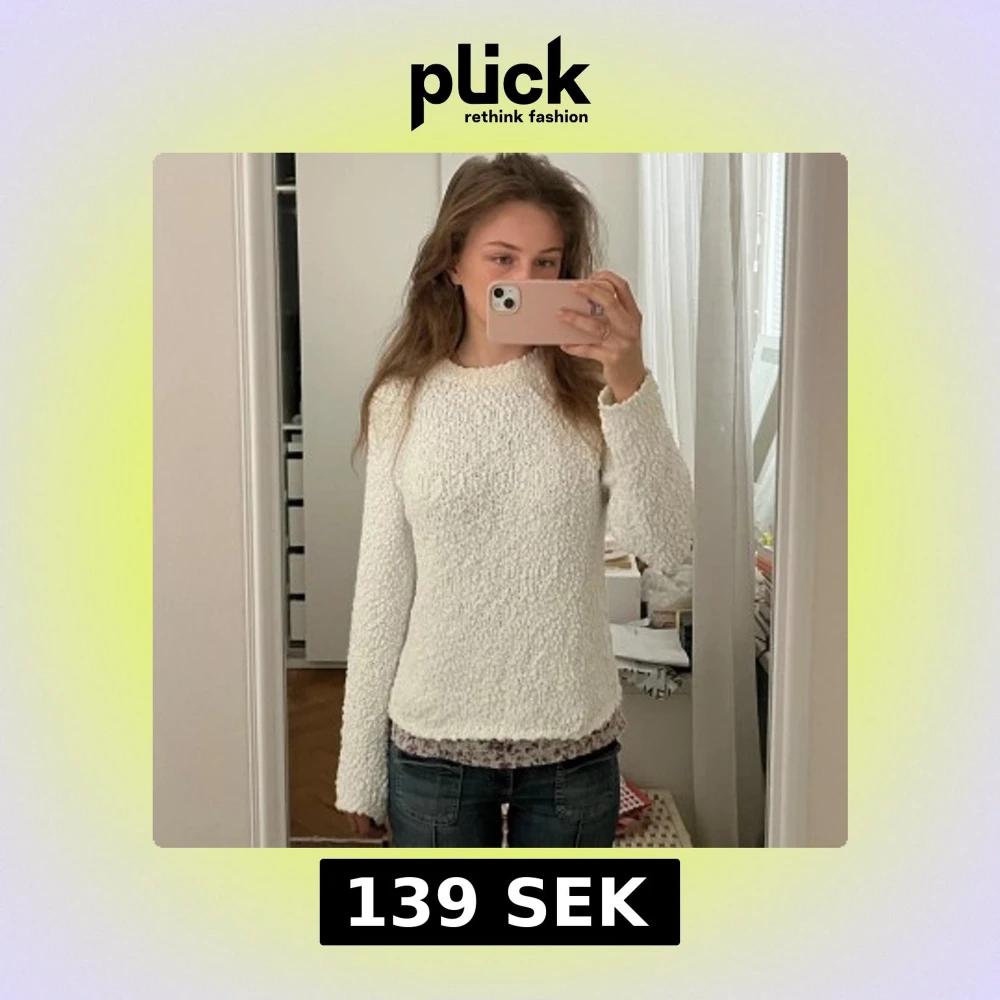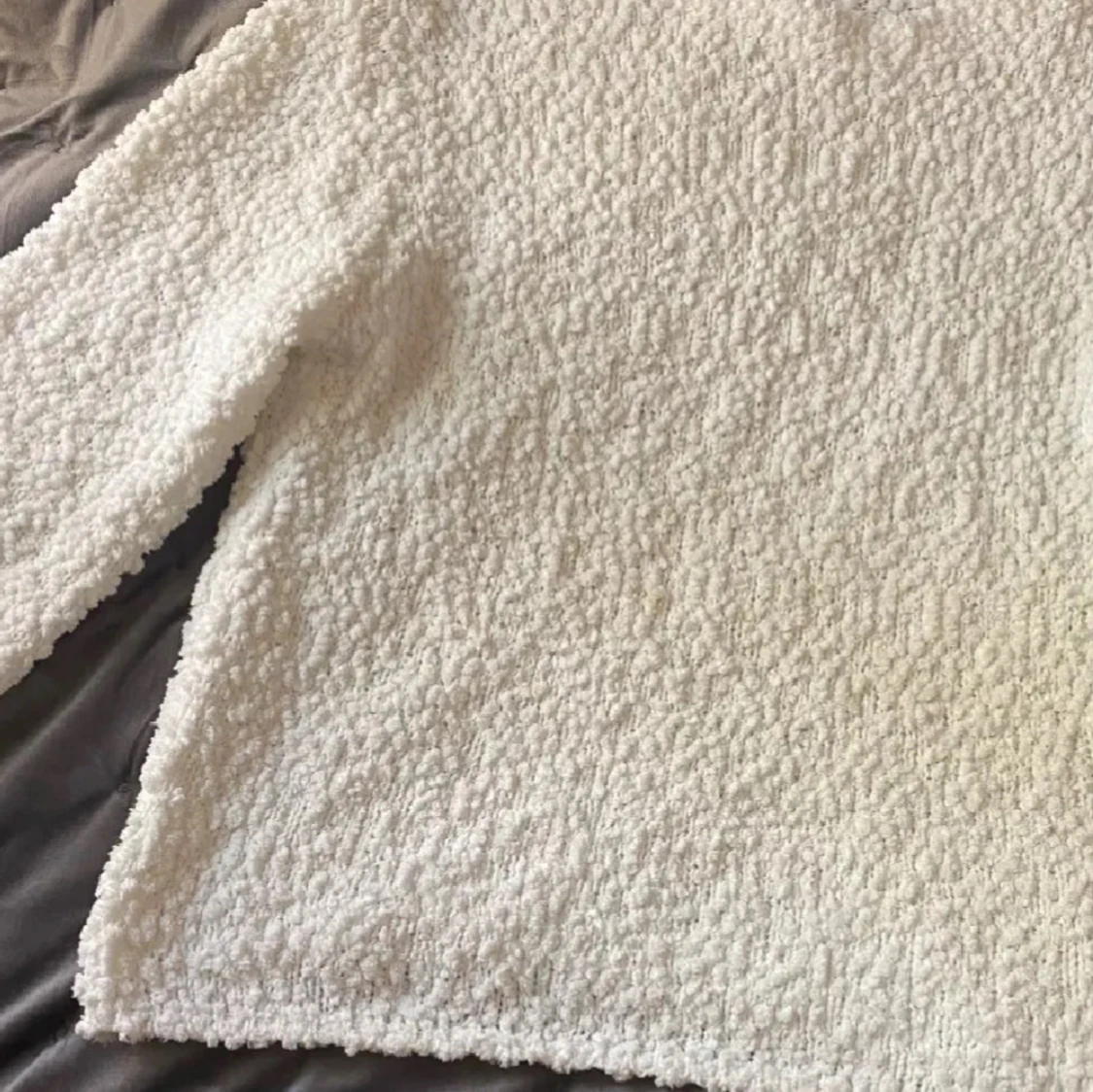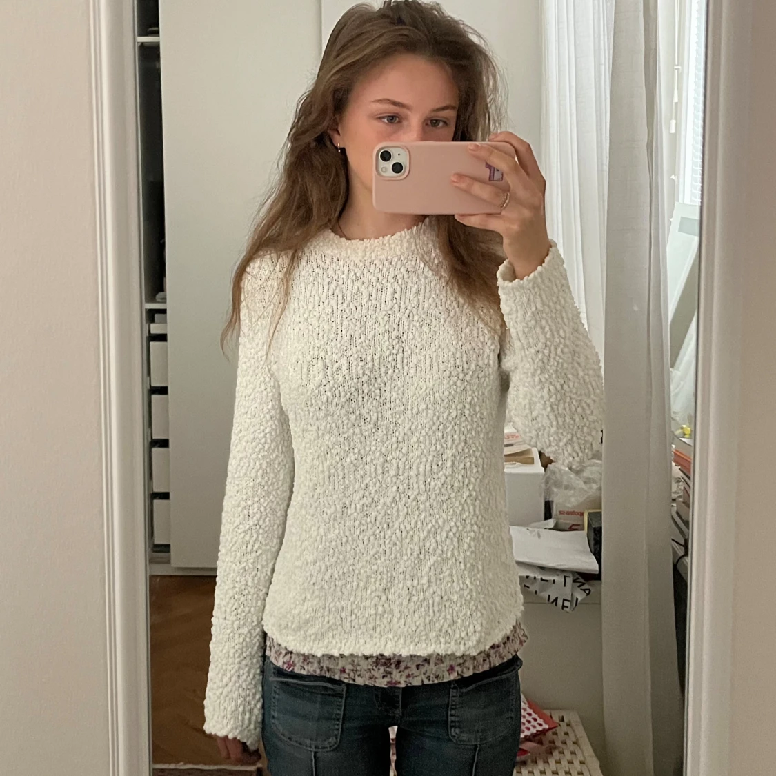 Supermjuk och fluffig vit stickad tröja med lång ärm och rund hals. Mysigt material! Storlek 150 men passar S. I princip oanvänd!