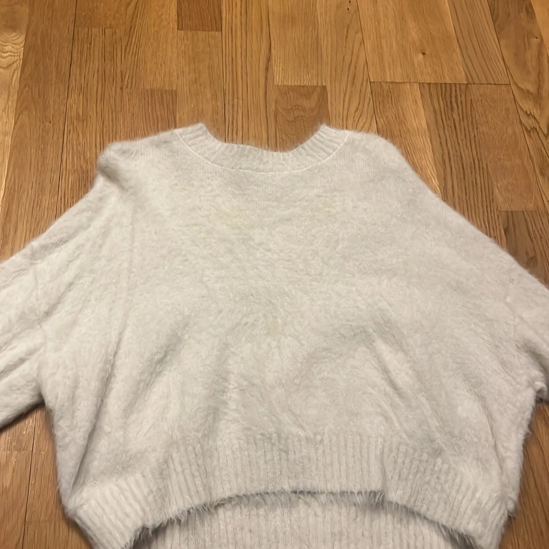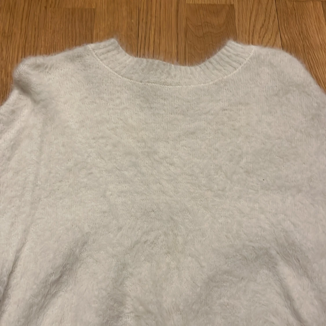 Mysig vit fluffig tröja från H&M. Perfekt för kyliga dagar med sin mjuka och varma känsla. Tröjan har en rund halsringning och ribbade kanter som ger en stilren look.