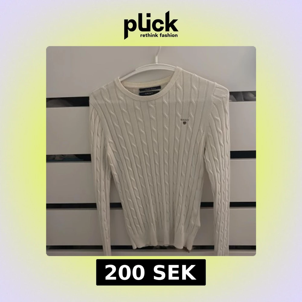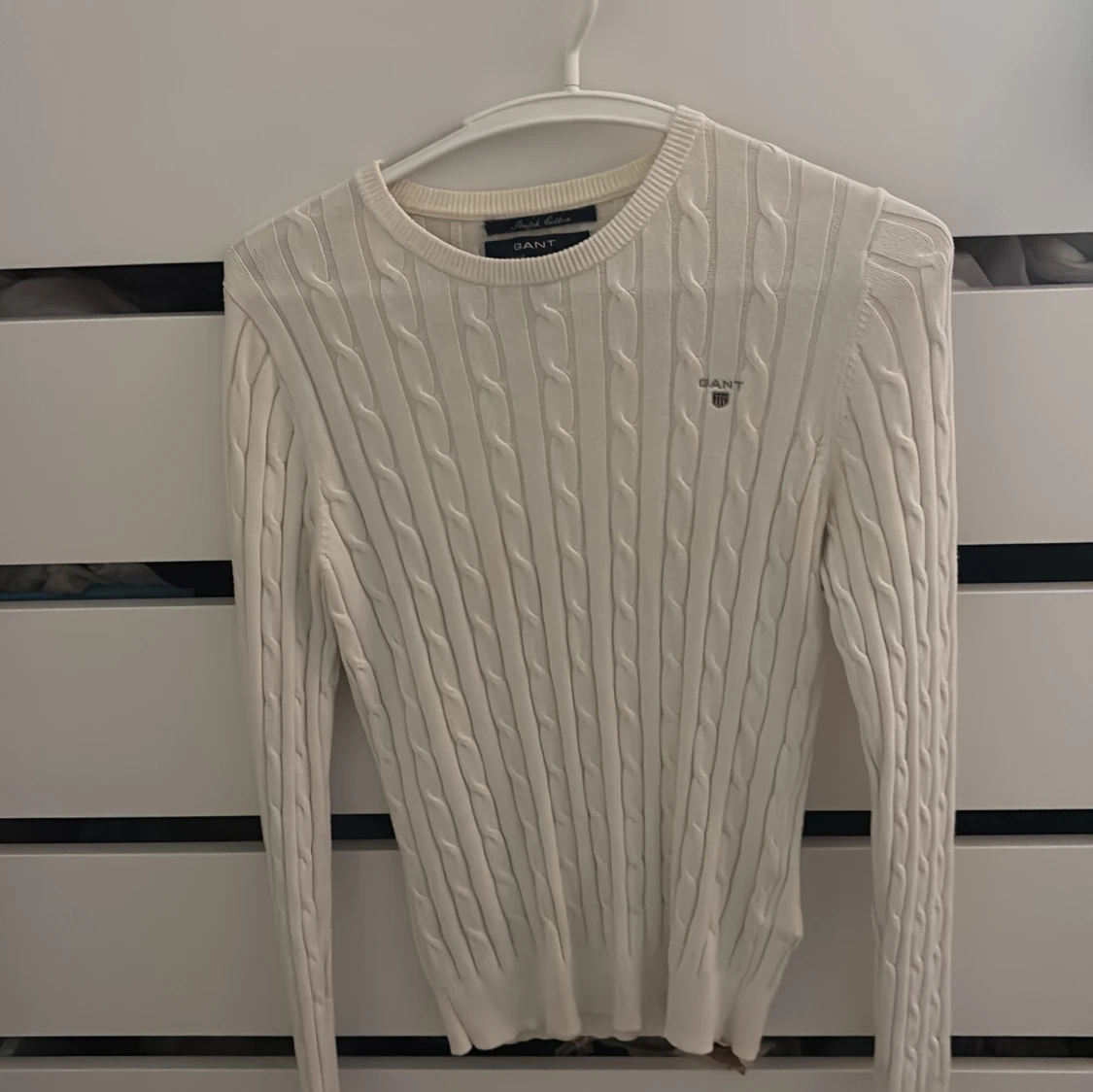 Vit kabelstickad tröja från Gant med rund halsringning och diskret logga på bröstet. Tröjan har lång ärm och en slim passform som sitter snyggt. Perfekt för dig som gillar klassisk och stilren look.