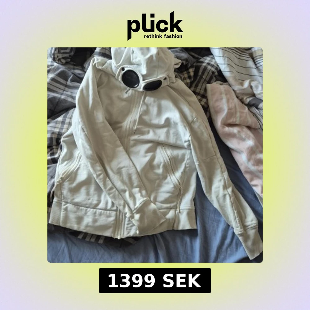 Säljer en clean vit hoodiejacka från C.P. Company med ikoniska goggles i huvan. Jackan har dragkedja framtill, två snedställda fickor med dragkedja och ribbade muddar. Perfekt för dig som vill sticka ut med streetwear-vibe och unik design. Det är size m men passar både i s och xs ör 175cm och passar perfekt. Min kompis är 165cm och den passar honom också bra. Äkta pris 2899kr. Mitt pris 1399kr