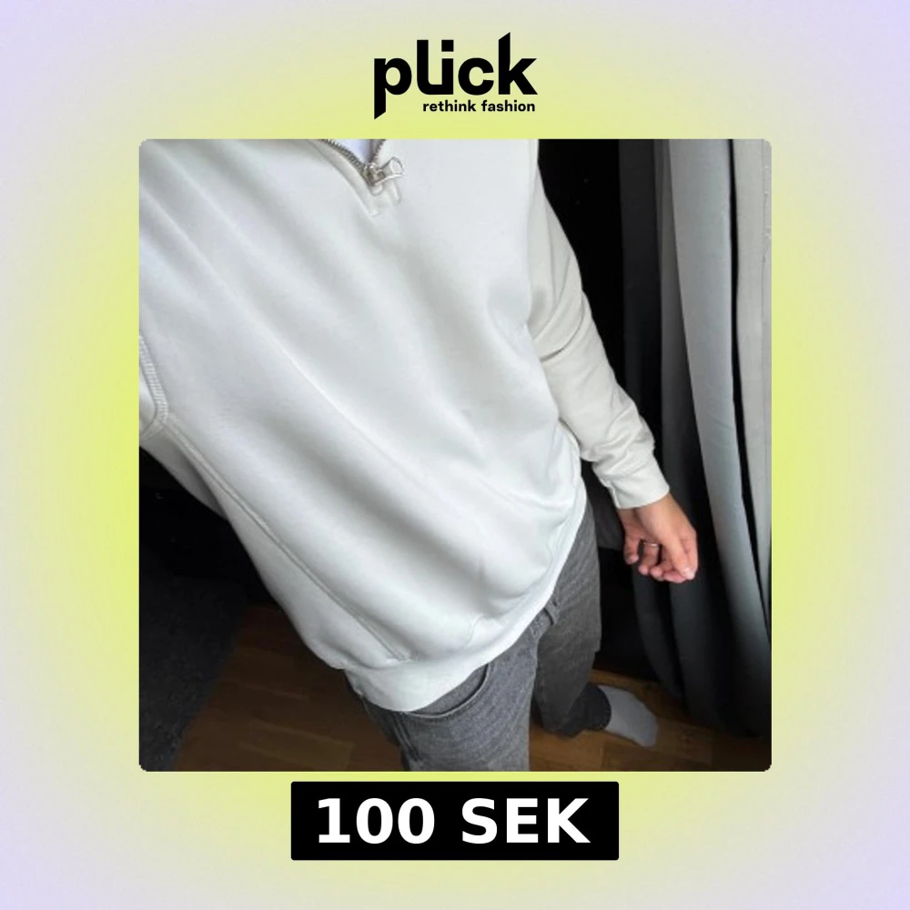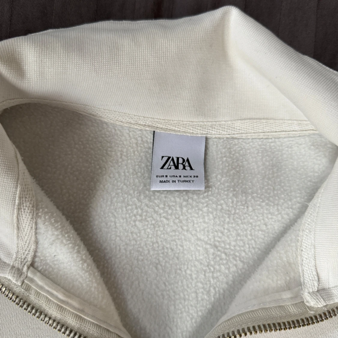 Säljer en stilren vit sweatshirt från Zara med half zip. Väl omhändertagen!