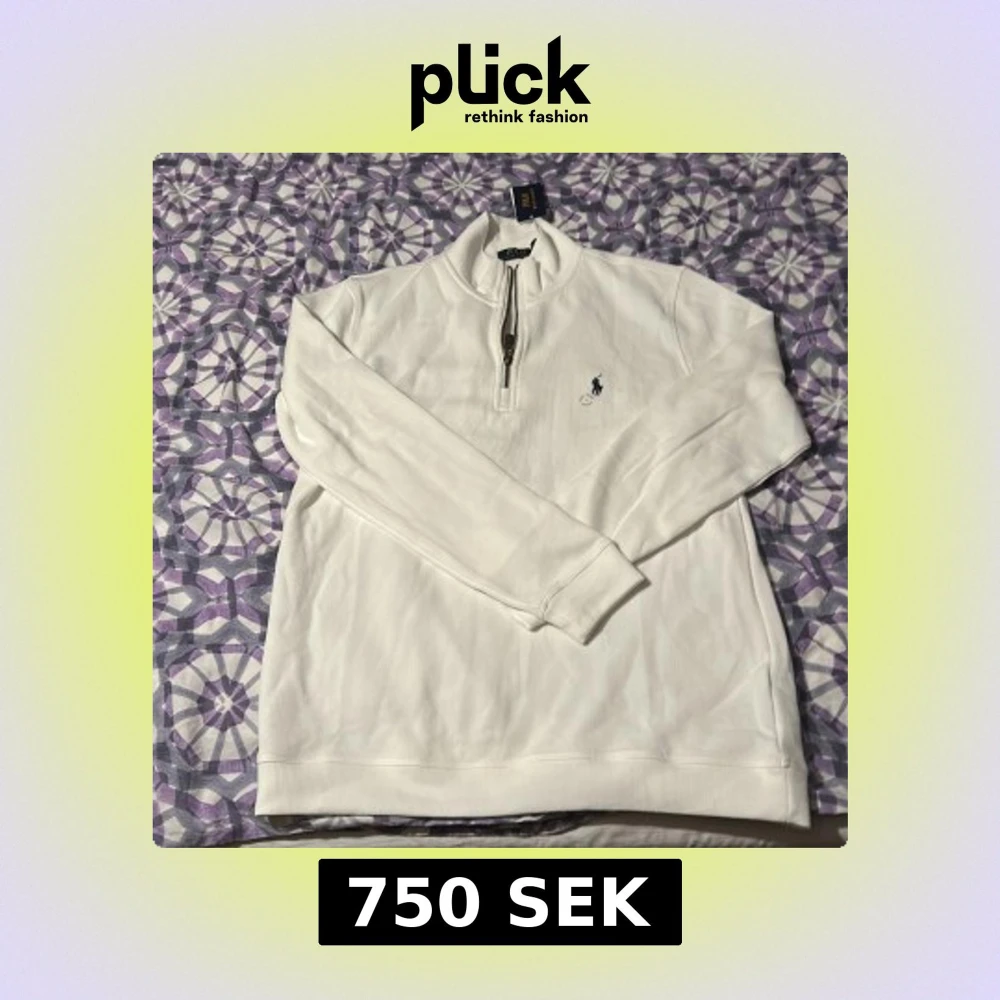 Vit långärmad tröja från Polo Ralph Lauren med half zip och broderad marinblå logga på bröstet. Tröjan har hög krage och är tillverkad i mjuk bomull, perfekt för en clean och stilren look.