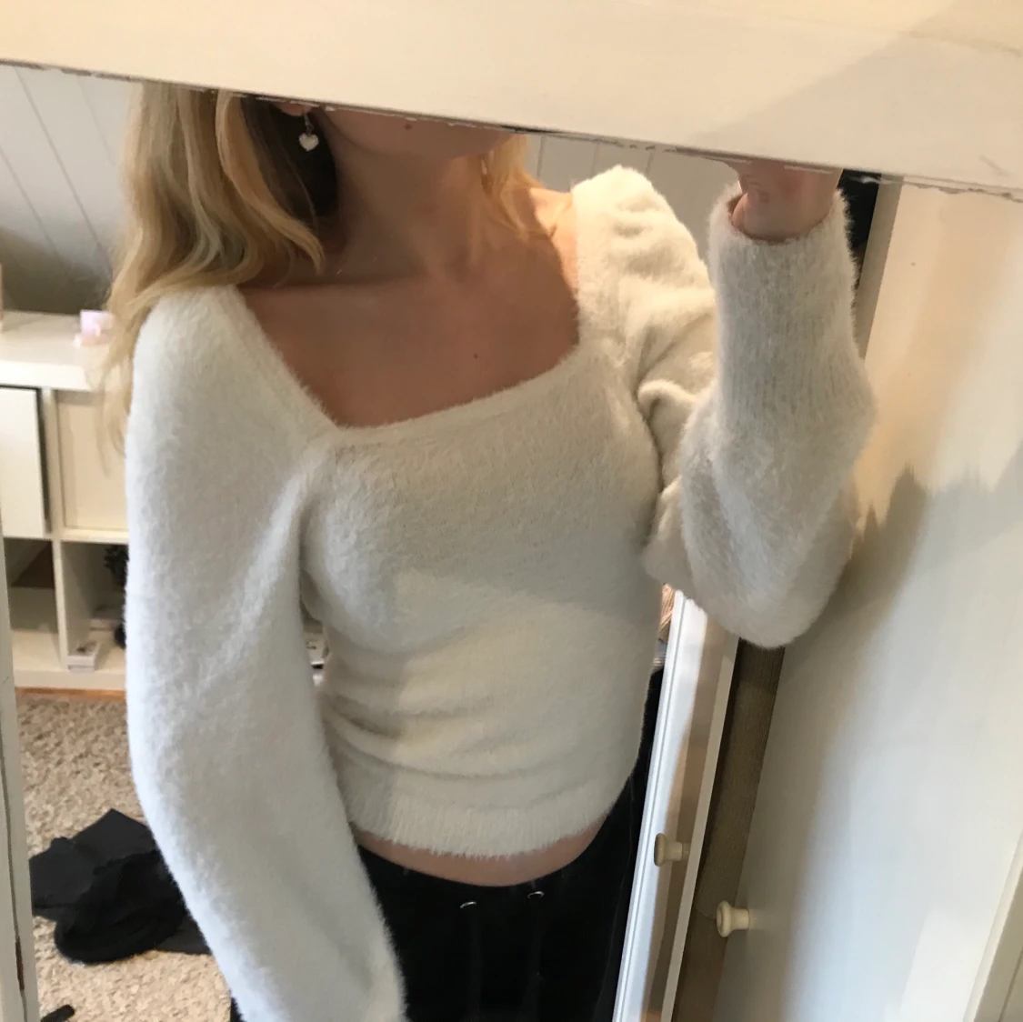 Vit fluffig tröja