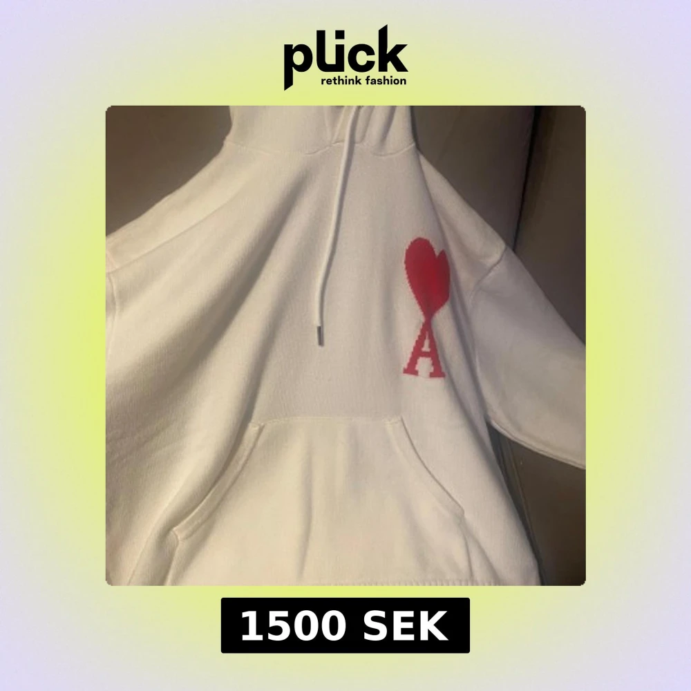 Vit hoodie från Ami Paris med rött hjärta och bokstaven A broderat på bröstet. Tröjan har huva med snörning och en stor magficka. Perfekt för dig som gillar stilrena och trendiga plagg med en twist.
