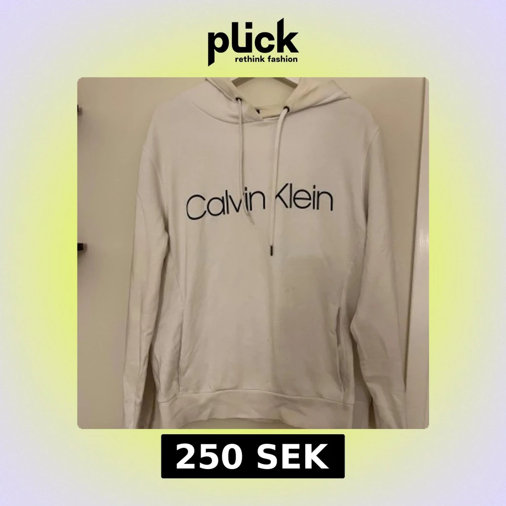 Snygg vit hoodie från Calvin Klein med stor svart logga framtill. Klassisk modell med huva och snörning, samt långa ärmar och ribbade muddar. Perfekt för en clean och stilren look.