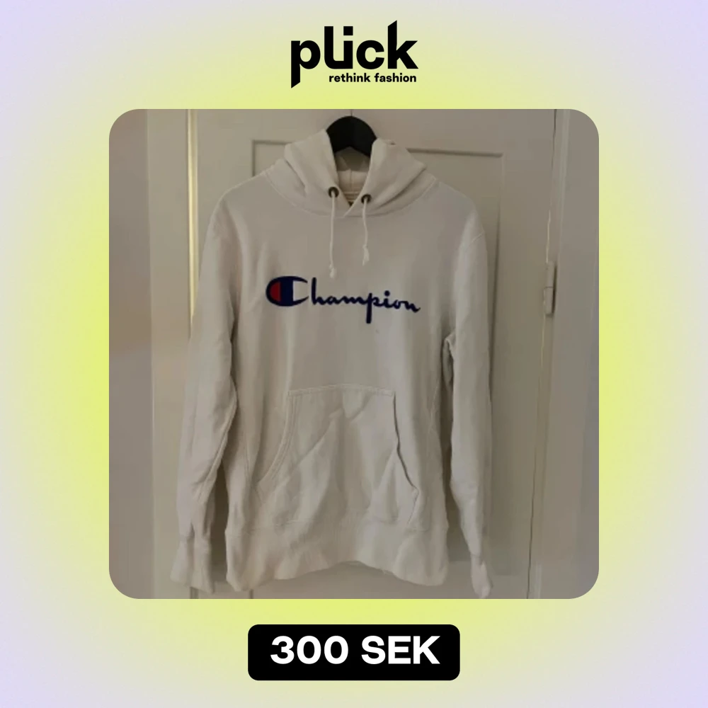 Säljer en snygg vit hoodie från Champion i storlek L. Den har en klassisk Champion-logga på bröstet och en liten logga på ärmen. Hoodien är i bra skick och perfekt för både höst och vinter. Den har en stor ficka fram och en bekväm huva med snören. Perfekt för en avslappnad stil!