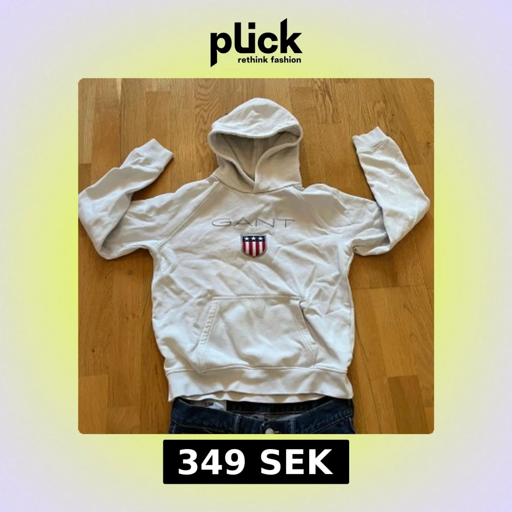 Säljer en stilren vit hoodie från GANT med broderad logga och emblem på bröstet. Tröjan har en klassisk känguruficka och en bekväm huva. Perfekt för en avslappnad stil.