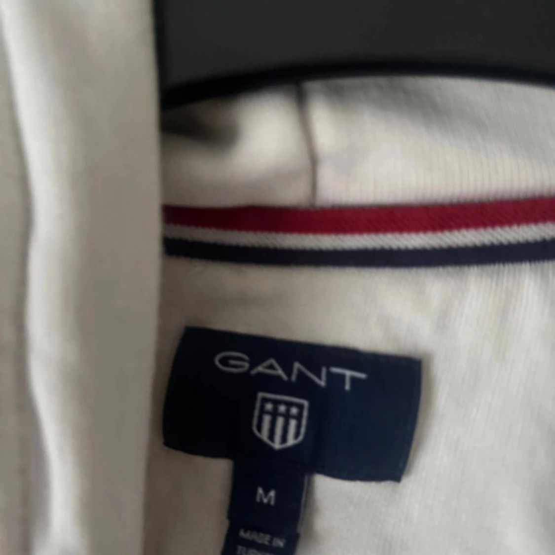 Vit hoodie från GANT med broderad logga och amerikanskt inspirerat emblem på bröstet. Tröjan har huva med snörning, känguruficka och långa ärmar. Tillverkad i mjuk bomull, perfekt för chill dagar. Snygg och klassisk streetstil.Har även någon fläck och sliten vid armarna
