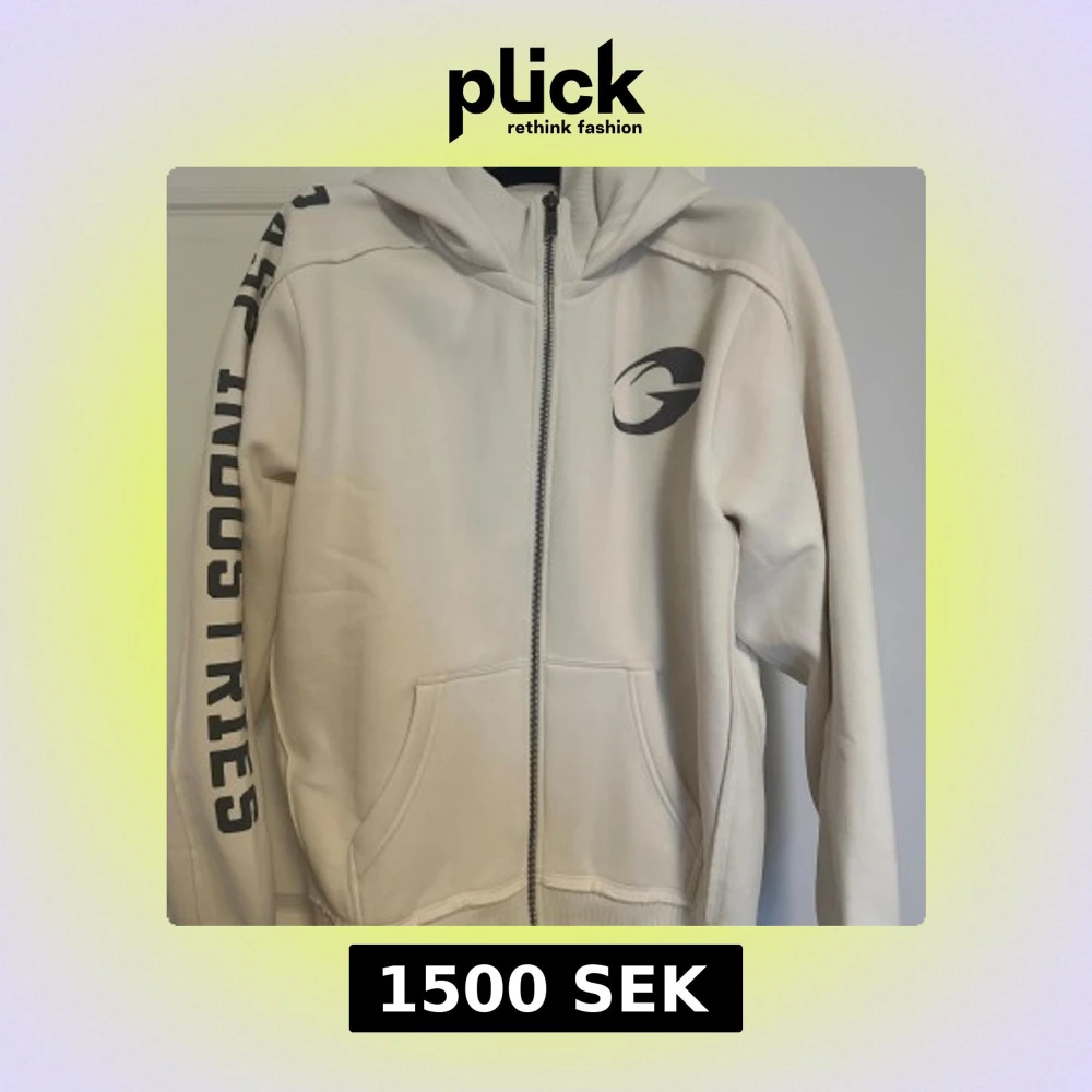 Säljer en vit hoodie från GASP med dragkedja och tryck på ärmen och huvan. Perfekt för en avslappnad stil. Den har en klassisk passform och är tillverkad i ett mjukt material.