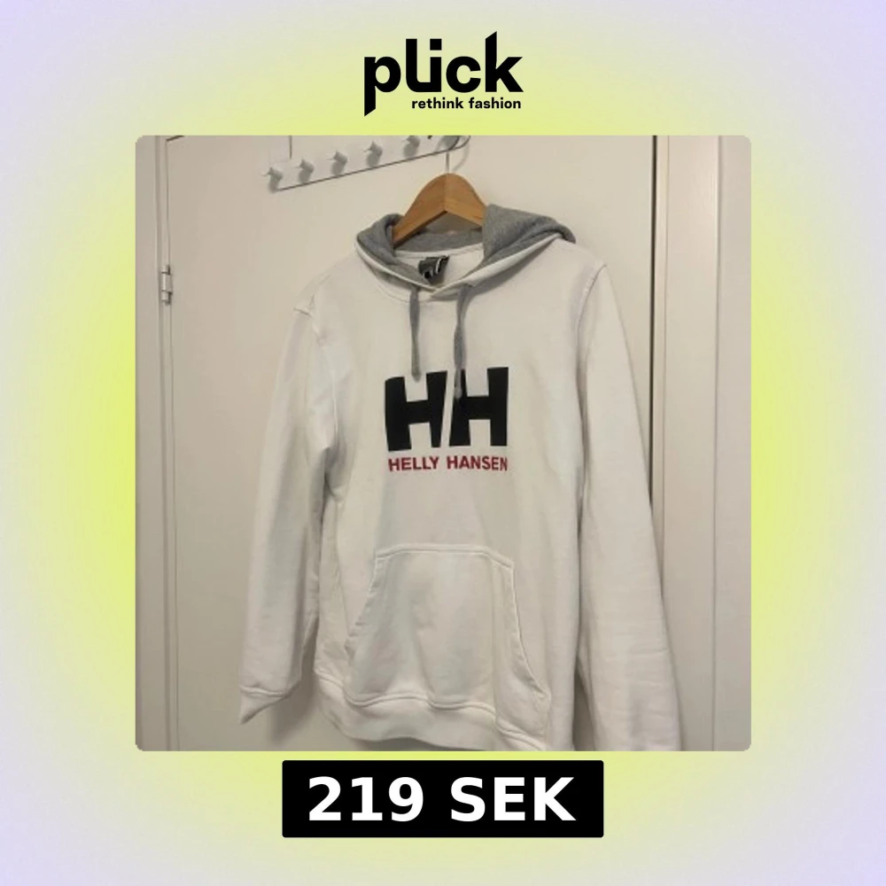 Vit hoodie från Helly Hansen med stor svart HH-logga och röd text på bröstet. Grå insida på huvan och gråa snören. Klassisk känguruficka framtill och mjukt material. Perfekt för en avslappnad stil.