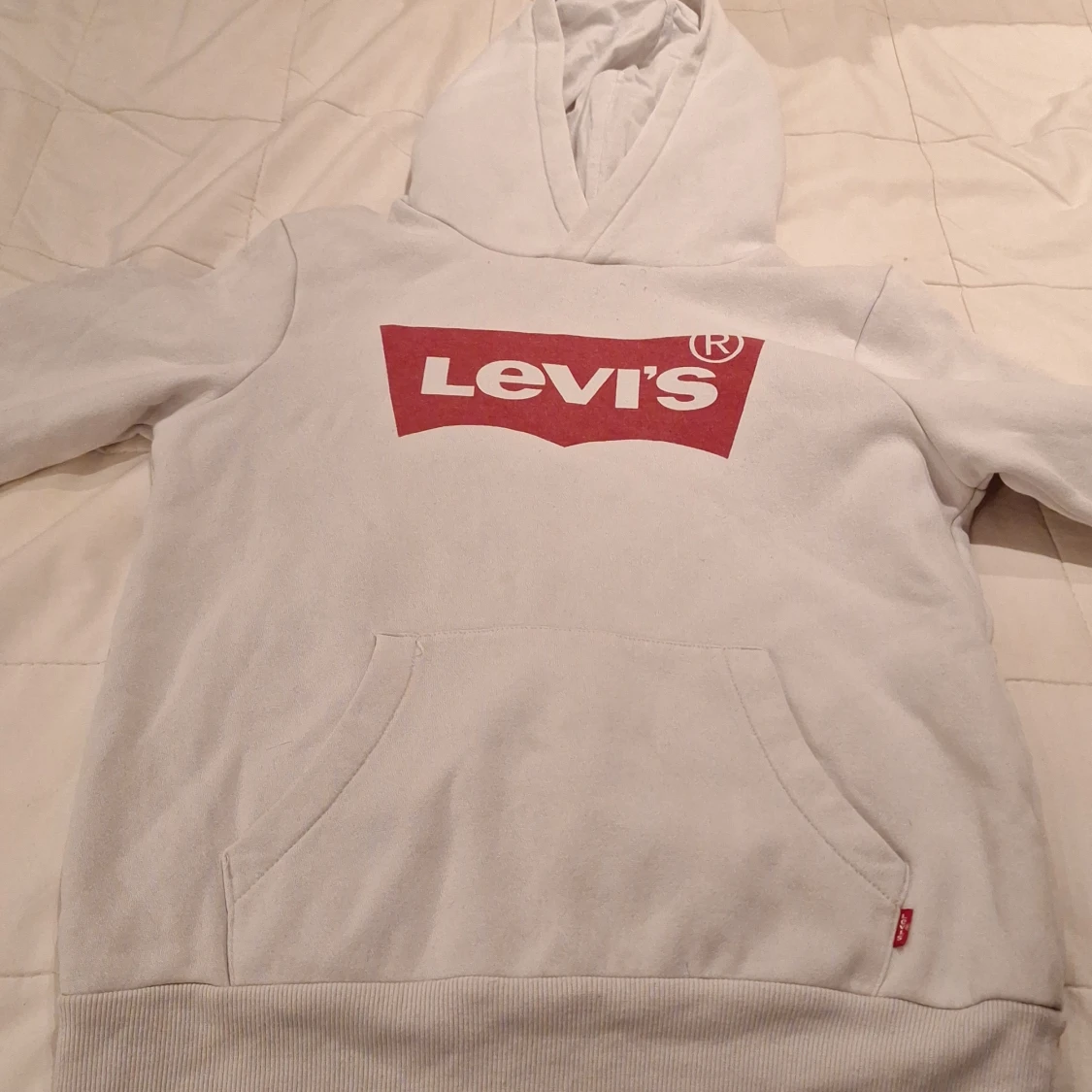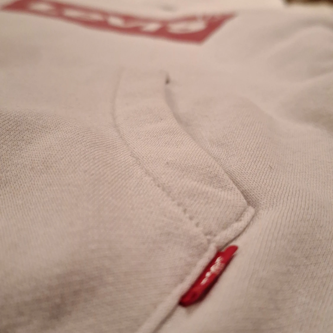 Vit hoodie från Levi's med klassisk röd logga framtill. Tröjan har huva, magficka och ribbade muddar vid ärmslut och nederkant. Perfekt för dig som gillar en clean och stilren look med streetkänsla.