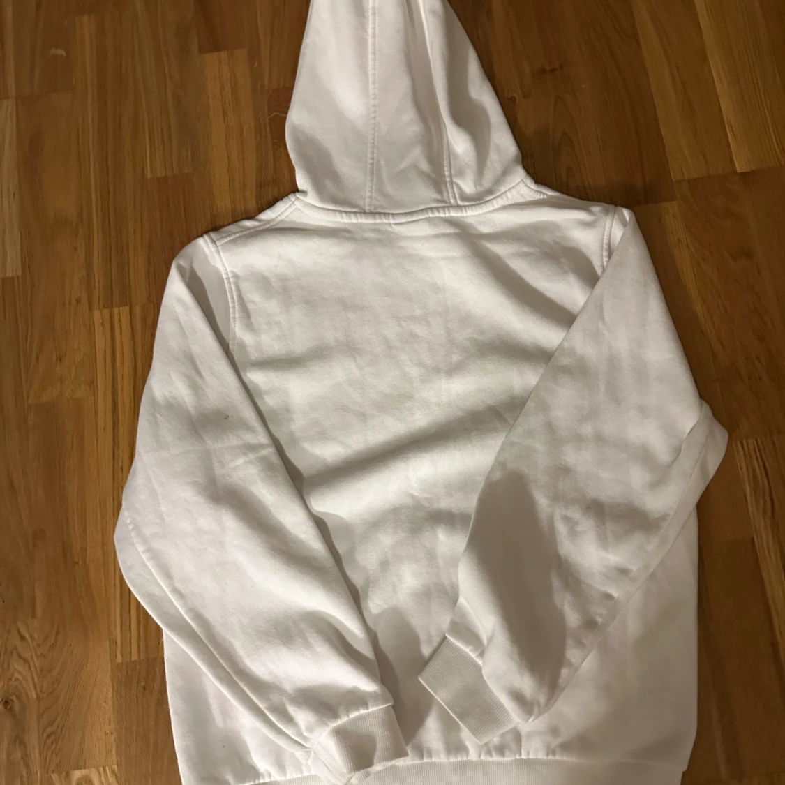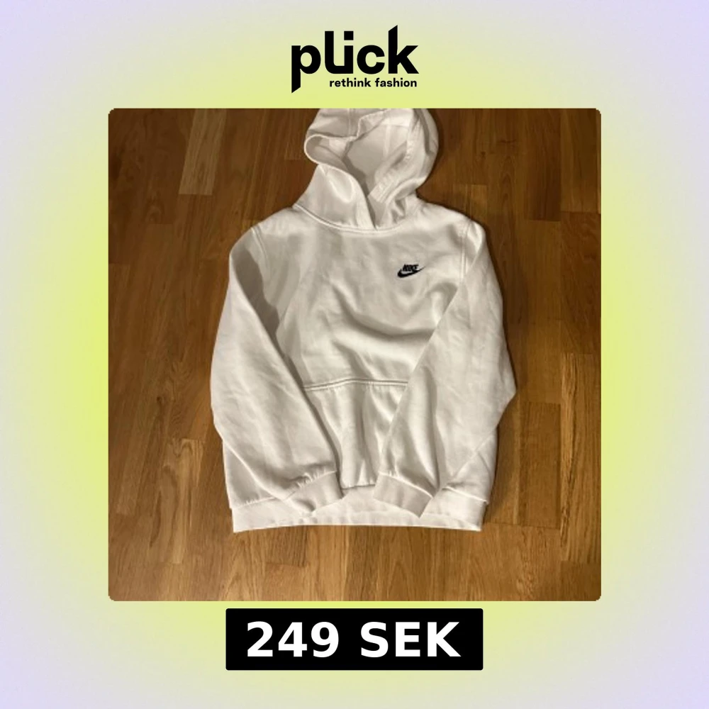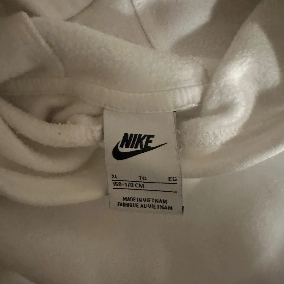 Säljer en clean vit hoodie från Nike i storlek XL. Klassisk design med svart Nike-logga på bröstet, stor huva och magficka. Mjuk och skön bomullsmix, perfekt för chill eller streetwear. Långärmad med ribbade muddar och avslappnad passform.