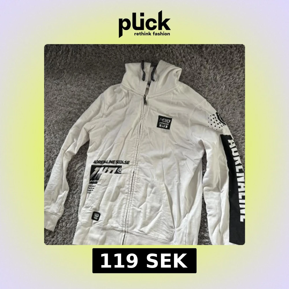 Vit hoodie från Petrol Industries med svart tryck och coola detaljer på ärmen. Tröjan har huva med snörning, dragkedja framtill och stora fickor. Perfekt för dig som gillar streetwear och vill sticka ut med en unik look.
