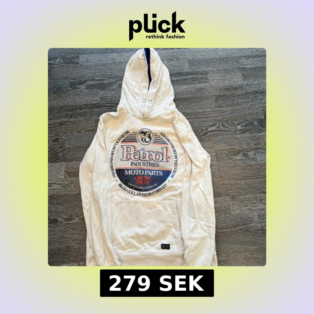 Säljer en vit hoodie från Petrol Industries med tryck på framsidan. Hoodien har en stor ficka framtill och en justerbar huva med blå färg inuti. Perfekt för en avslappnad stil. Passsr riktig snyggt på mig som är 170 cm.