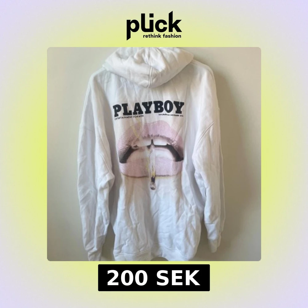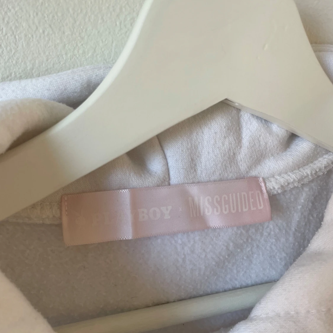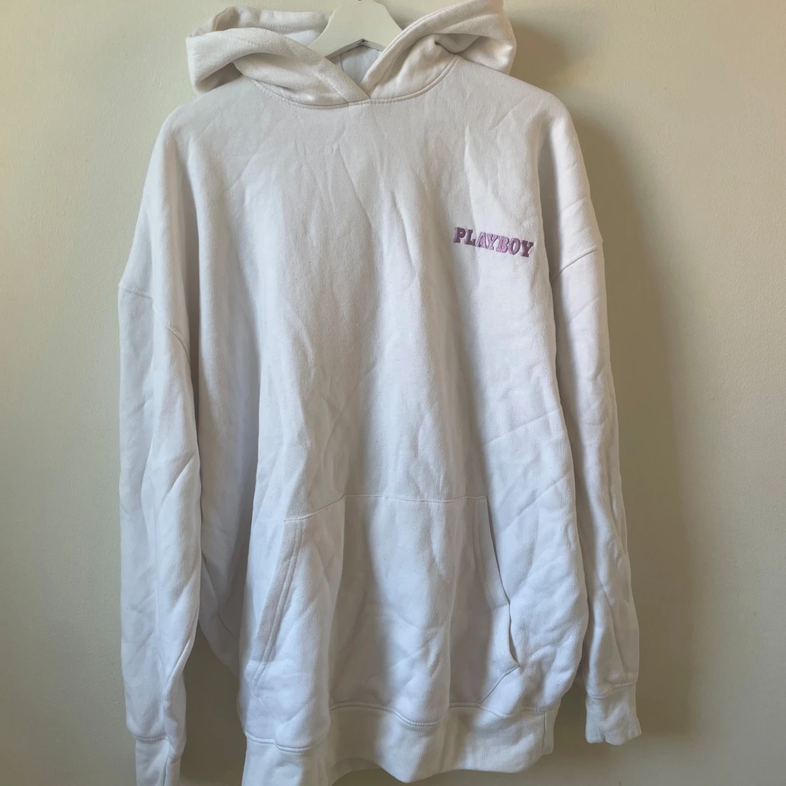 Hoodie från Missguided x Playboy. Storlek 6(XS) men är extremt oversize, stor och mysig på mig som har storlek S. Stort Playboy tryck på ryggen samt liten Playboy text på framsidan. Använt men bra skick, lite små noppror utspritt, var god se sista bilden. Jag har massor av artiklar till salu! Köp flera och få rabatt!Säljer en vit hoodie från Playboy x Missguided med tryck av läppar och texten PLAYBOY på ryggen. Framtill finns en liten lila logga. Hoodien har huva, känguruficka och långa ärmar.