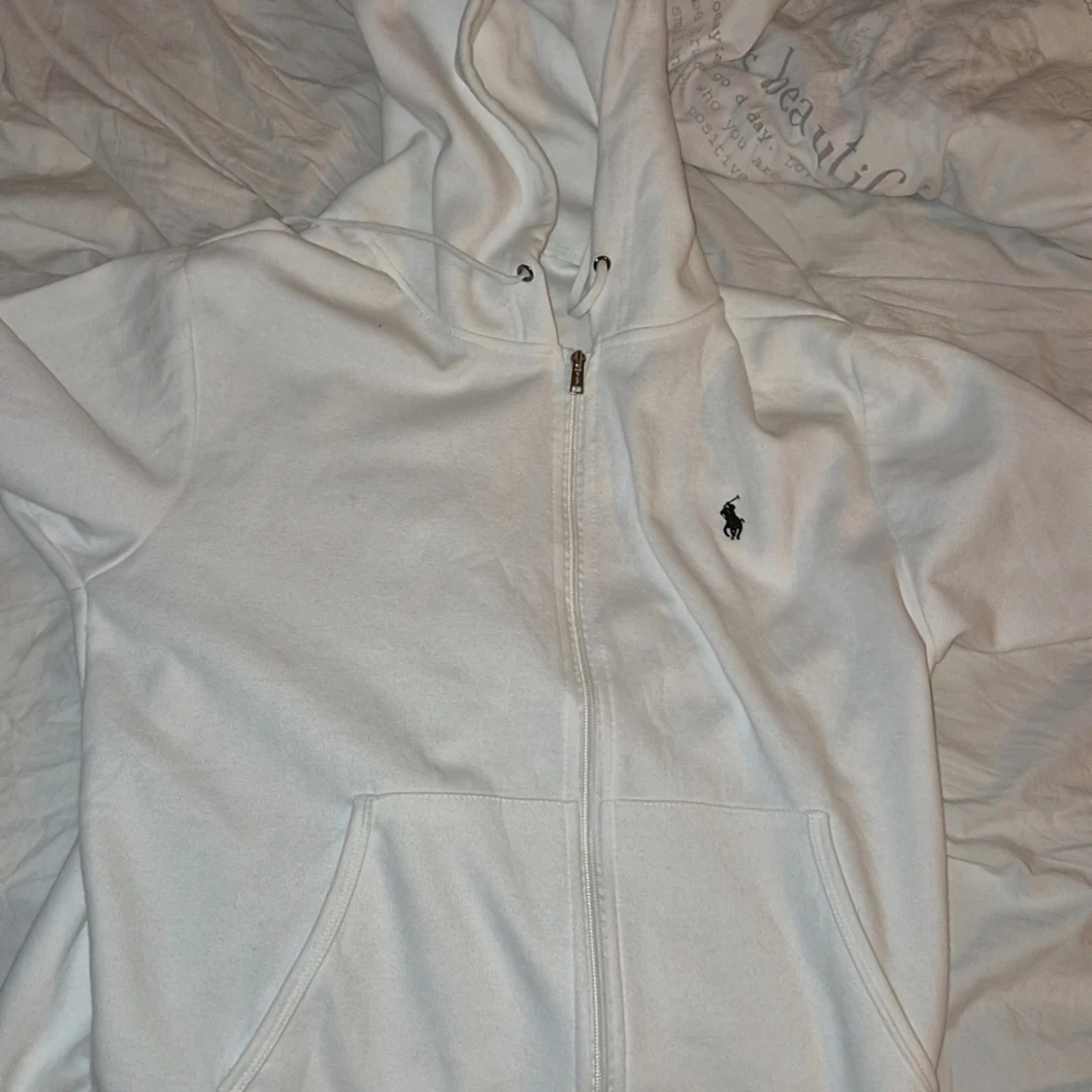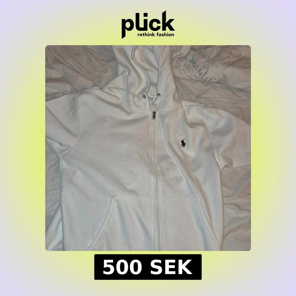 Tar minst 400 kr vit zip hoodie från Ralph Lauren Perfekt för en clean och stilren look. Storlek medium. Nypris 2000, mitt pris 500.