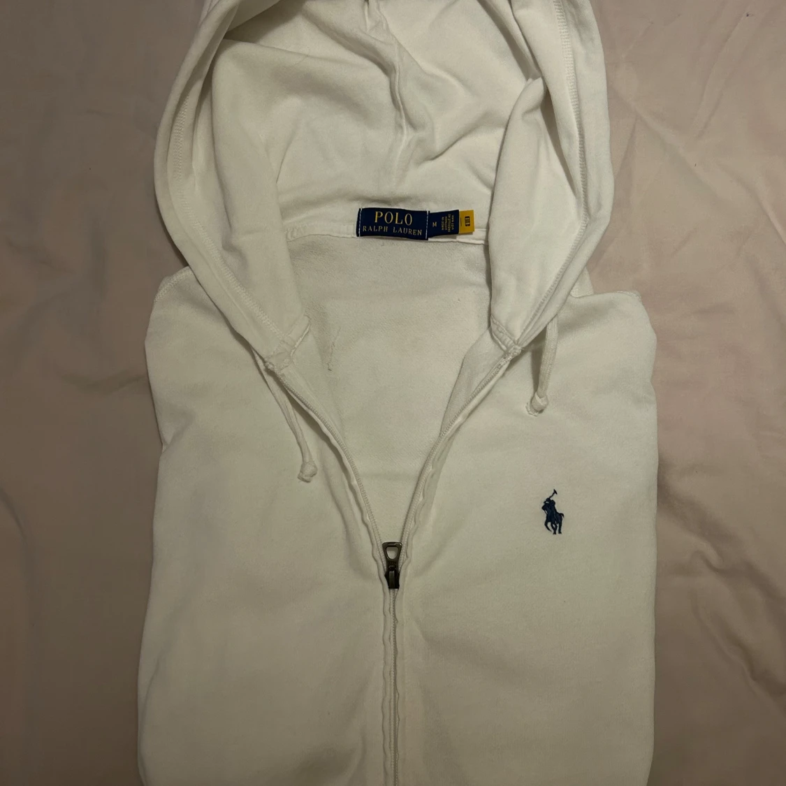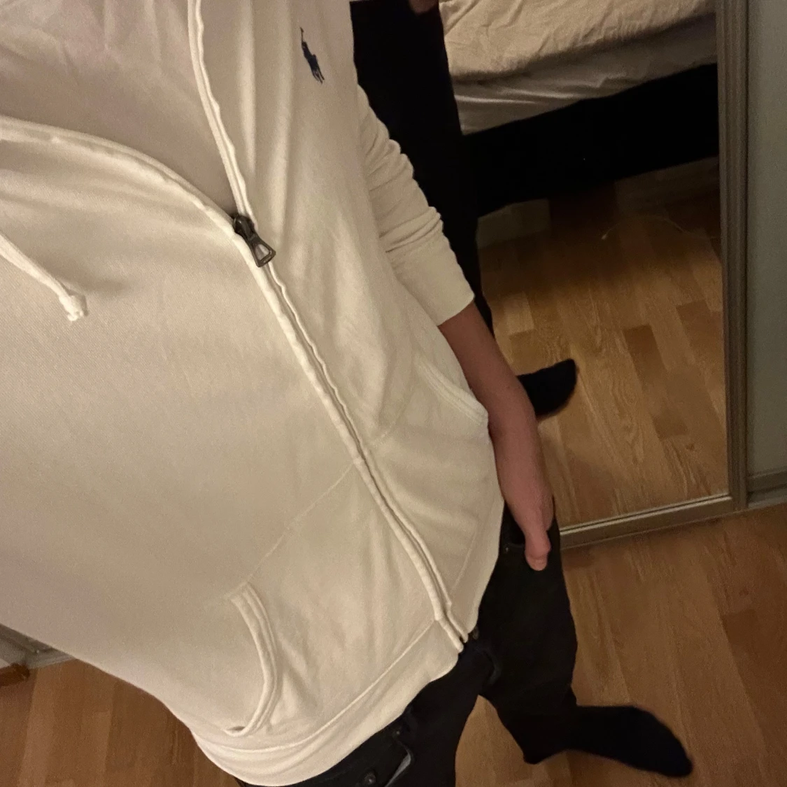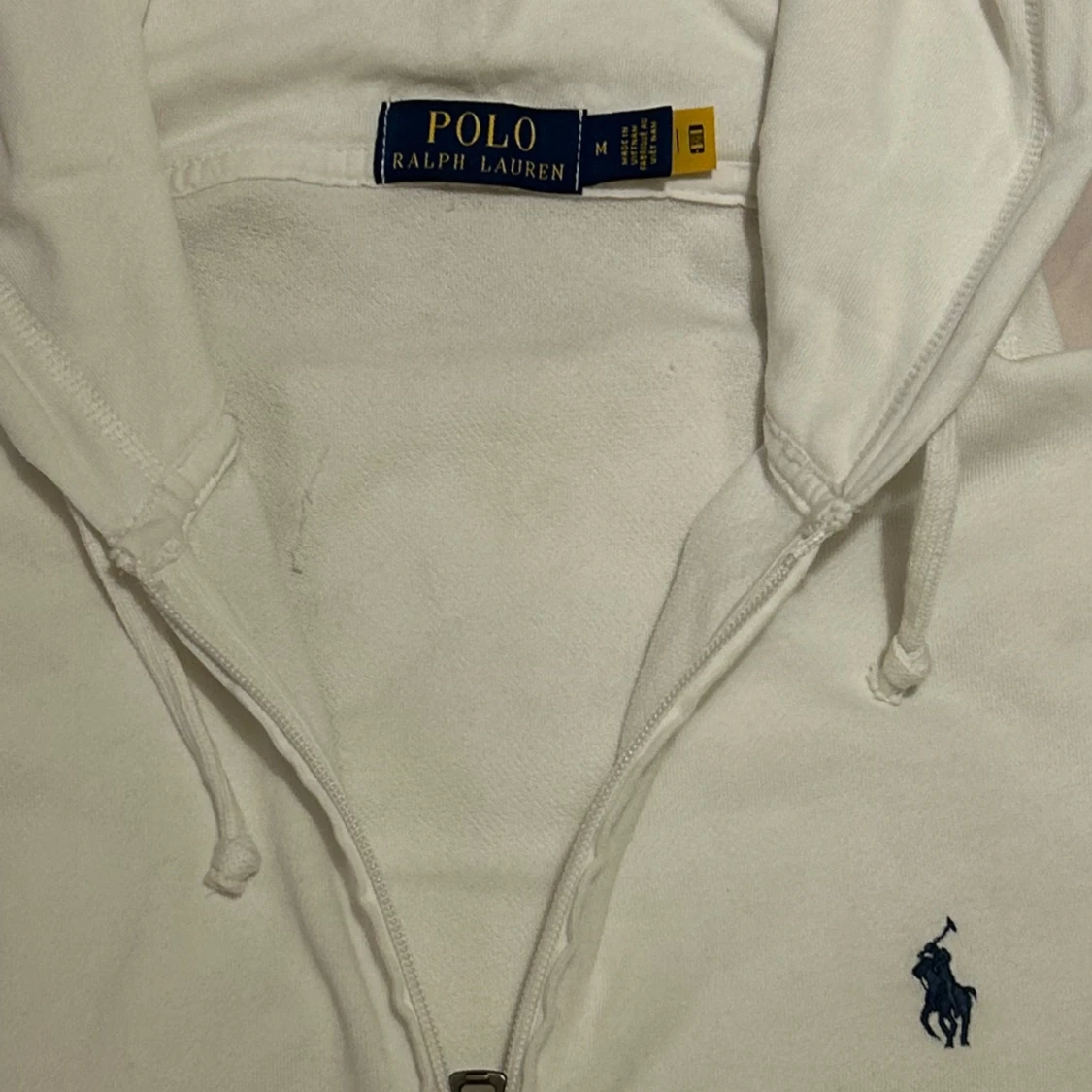 Säljer en stilren vit hoodie från Ralph Lauren med dragkedja och klassisk logga på bröstet. Perfekt för en avslappnad look. Storlek är M och nypris är (1699kr)
